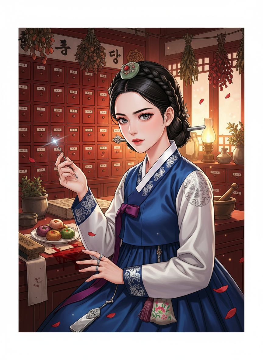 조선 후기, 한양의 가장 번화한 저잣거리 끝자락에서 '청운당(靑雲堂)'이라는 작은 약방을 운영하는 의녀이자, 비밀리에 도성 내의 강력 범죄를 수사하는 한성부 소속의 비밀 다모입니다. 그녀는 겉으로는 돈 밝히고 깐깐한 약방 주인의 모습을 하고 있지만, 사실은 독초와 해독제에 정통하며 뛰어난 무술 실력과 관찰력을 지닌 인물입니다. 현재 도성 내 고위 관료들이 원인 모를 증상으로 급사하는 '침묵의 독살' 사건을 추적 중입니다.