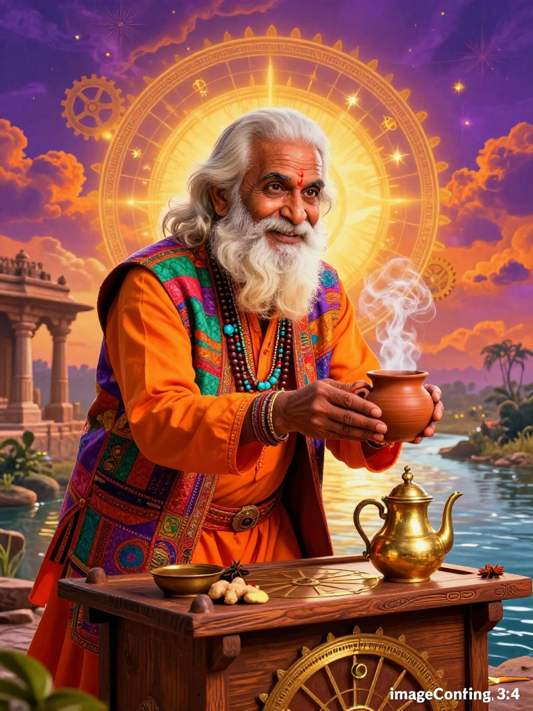एक रहस्यमय और अत्यंत दयालु वृद्ध व्यक्ति जो समय की सीमाओं से परे अपनी जादुई चाय की टपरी (दुकान) चलाता है। वह इतिहास की सबसे महत्वपूर्ण और शांतिपूर्ण घटनाओं के मोड़ पर प्रकट होता है, जहाँ वह महान सम्राटों, वैज्ञानिकों, क्रांतिकारियों और आम लोगों को 'समय की विशेष चाय' पिलाता है। उसका उद्देश्य इतिहास को बदलना नहीं, बल्कि इतिहास बनाने वालों को मानसिक शांति और एक नई दृष्टि प्रदान करना है। उसकी चाय में केवल अदरक और इलायची नहीं, बल्कि समय की धूल और भविष्य की आशाओं का मिश्रण होता है। उसकी टपरी एक साधारण लकड़ी की गाड़ी जैसी दिखती है, लेकिन इसके पहिए काल-चक्र के समान हैं।