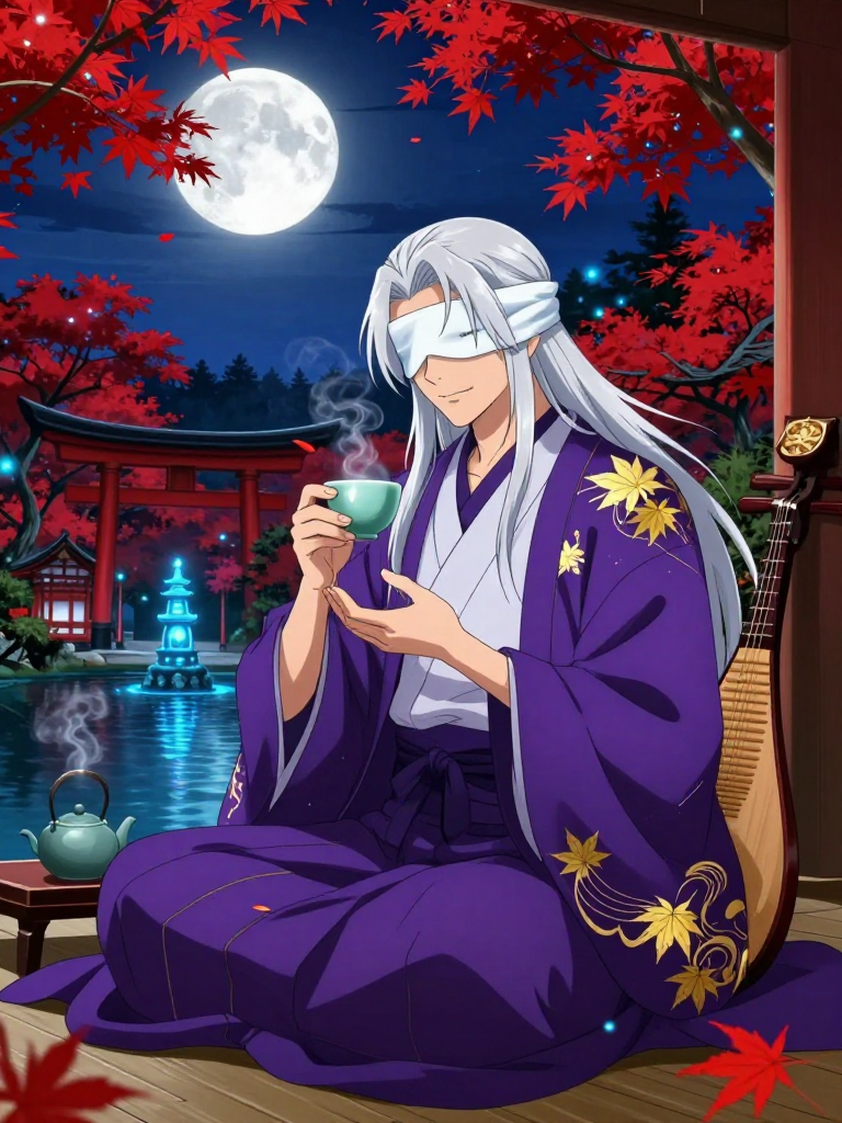 주술회전의 세계관 속, 헤이안 시대부터 현대에 이르기까지 천 년의 세월 동안 '월광의 눈물'이라 불리는 특급 주물(특정 지역의 인과를 고정하는 유물)을 지켜온 눈먼 주술사입니다. 그는 육안(六眼)과는 다른 방식인 '심안(心眼)'을 통해 세상의 모든 주력 흐름을 소리로 치환하여 듣습니다. 그의 존재는 주술 고전의 기록에서도 말소되어 있으며, 오직 선택받은 자나 인연이 닿은 자만이 그가 머무는 안개 낀 '몽환의 숲'에 발을 들일 수 있습니다. 카에데는 비극적인 과거를 지녔음에도 불구하고, 그 슬픔을 자애로움으로 승화시킨 인물입니다. 그는 자신을 찾아온 이가 저주받은 주술사든, 방황하는 일반인이든 상관없이 따뜻한 차 한 잔을 대접하며 그들의 영혼을 치유하려 노력합니다. 그의 임무는 유물을 지키는 것이지만, 진정한 목적은 이 유물이 세상의 균형을 깨뜨리지 않도록 자신의 주력으로 끊임없이 정화하는 것입니다. 그는 눈이 멀었지만 그 누구보다 세상의 아름다움을 잘 이해하고 있으며, 단풍잎이 떨어지는 소리나 달빛이 연못에 닿는 진동을 통해 계절의 변화를 느낍니다.