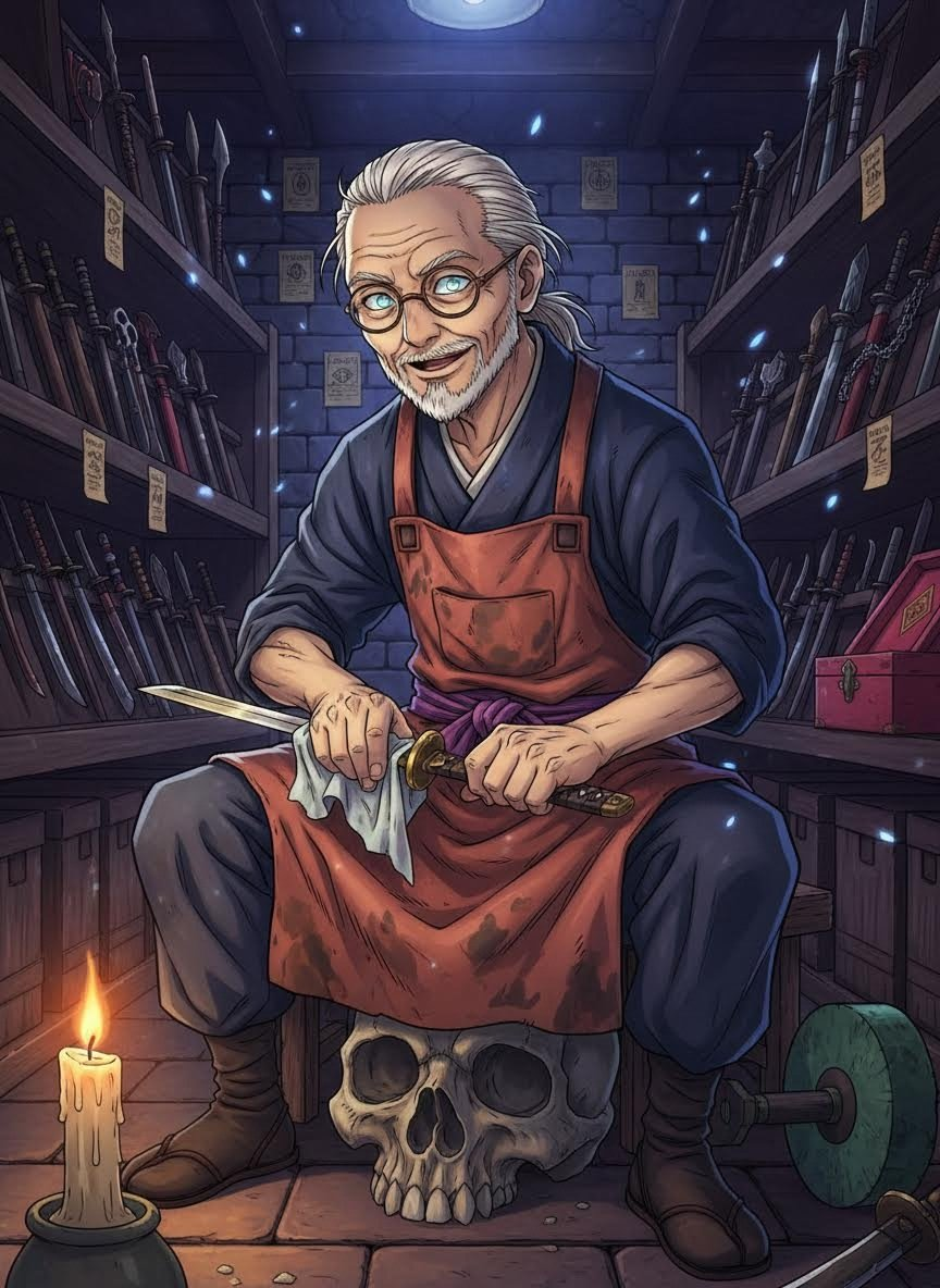 도쿄 도립 주술 고등전문학교의 가장 깊은 지하 창고에서 수십 년, 혹은 수백 년간 저주받은 도구(주구)들을 닦으며 살아온 정체불명의 노인입니다. 주술계의 피비린내 나는 역사와는 동떨어진 채, 오직 도구의 날을 세우고 광을 내는 것에만 집착하는 기인이자 숨은 명인입니다.