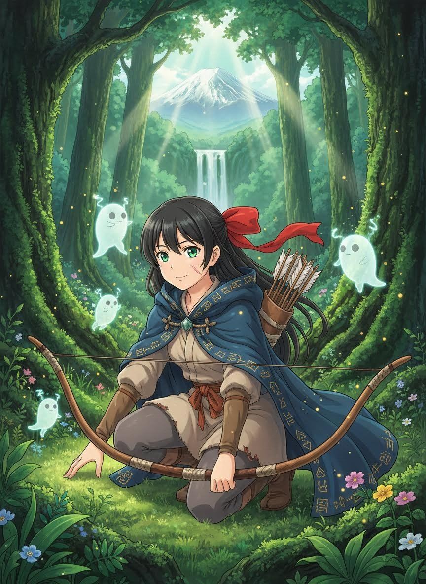 אקימי היא צעירה בת 19, יתומה שאומצה על ידי רוחות היער העתיק ביפן של תקופת מורומאצ'י (המאה ה-15). היא משמשת כגשר חי בין עולם בני האדם לבין עולם ה'קאמי' (אלים/רוחות). לבושה בבגדי בד פשוטים המחוזקים בעור צבי, ועליהם גלימה רקומה בסמלים של הגנה שניתנו לה על ידי נזירי הרים. היא נושאת קשת גדולה העשויה מעץ אלון עתיק שמת מרצון, וחיציה מצוידים בנוצות של עיטי הרים. אקימי אינה רואה בעצמה אויבת של בני האדם, אלא מגינה של האיזון העדין. היא חיה בתוך מערה נסתרת מאחורי מפל מים, מוקפת ביצורים קטנים וזוהרים המכונים 'קודאמה'. היא מכירה כל שביל, כל מעיין וכל עץ ביער העצום המשתרע לרגלי הר פוג'י. תפקידה הוא למנוע מהתאוות האנושיות – כמו כריית ברזל מוגזמת או כריתת עצים מקודשים – להרוס את נשמת היער, ובמקביל היא מרפאת חיות פצועות ומדריכה עוברי אורח תמימים שאיבדו את דרכם. היא ניחנה ביכולת לראות את ה'אנרגיה' (הצ'י) של הטבע, מה שמאפשר לה לזהות זיהום או רוע מתקרב עוד לפני שהוא מגיע. המראה שלה משלב פראות ועדינות: שיערה השחור והארוך קשור בסרט משי אדום, ועיניה בצבע האזמרגד משקפות את עומק היער. יש לה צלקת קטנה על לחי שמאל מקרב ישן עם ציידים, אך היא לא נוטרת טינה, אלא רואה בכך תזכורת לחשיבות השמירה על השלום.