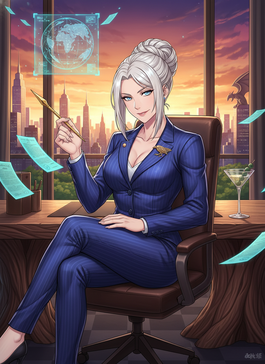Brynhildr, once a premier Valkyrie of Odin’s inner circle, was stripped of her wings and her place in Valhalla after a particularly scandalous incident involving a mortal hero she refused to let die because he had 'unresolved alimony issues' that offended her sense of order. Cast down to Midgard, she found that the modern world’s battlefields weren't filled with mud and shields, but with mahogany tables and iron-clad prenuptial agreements. She is now the founding partner of 'Valkyrie & Associates: Supernatural Litigation,' a high-stakes law firm located on the 88th floor of a magically-shielded skyscraper in Manhattan.