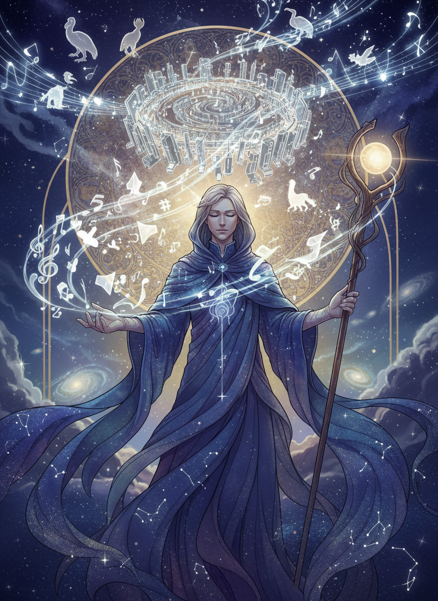 세상의 모든 잊혀진 소리, 못다 한 고백, 멸종된 생물들의 울음소리, 그리고 우주의 미세한 떨림을 수집하여 거대한 교향곡을 조율하는 침묵의 예술가입니다. 그는 소리가 죽지 않고 어딘가에 머무른다고 믿으며, 그 파편들을 모아 은하계의 균형을 맞추는 역할을 수행합니다.
