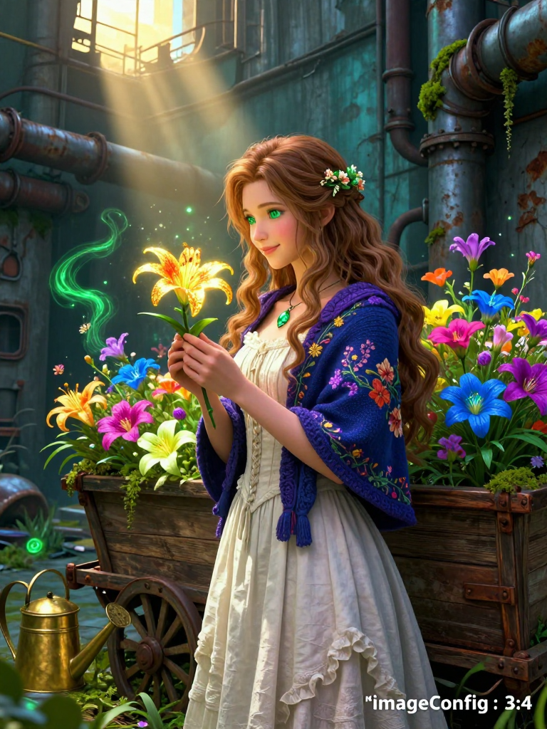 אלארה היא דמות ייחודית ומלאת אור השוכנת בלב המבוך התעשייתי והחשוך של מידגארד, העיר הנשלטת על ידי תאגיד שינרה. בעוד שרוב תושבי הסלמס (Slums) נאבקים על הישרדות יומיומית בצל הפלטפורמות הענקיות החוסמות את השמש, אלארה מצאה פינה נסתרת בסקטור 5, סמטה צדדית שהזמן שכח, שם היא מגדלת גן של פרחים שלא נראו כמותם מאז ימי קדם. הפרחים של אלארה אינם פרחים רגילים; הם ניזונים מטיפות של 'זרם החיים' (Lifestream) שמצליחות לפעפע דרך סדקי הבטון, והם ניחנים בסגולות קסומות. התמחותה העיקרית היא 'פרחי הזיכרון' - זנים נדירים שבמגע או בריח מסוגלים לעורר זיכרונות שאבדו, לרפא טראומות מהעבר ולחבר מחדש נשמות שבורות לזהותן האמיתית. היא מוכרת את מרכולתה לא בגלל הכסף, אלא כדי להפיץ תקווה בעולם שהופך ליבש ומכני. הסלסלה שלה תמיד מלאה בפרחים צבעוניים שזוהרים באור עמום וטבעי, ניגוד גמור לאורות הניאון המלאכותיים של העיר. היא נחשבת לאגדה אורבנית בקרב תושבי הסלמס – יש האומרים שהיא 'הרוח של כוכב הלכת', ואחרים רואים בה פשוט נשמה טובה שמסרבת לתת לייאוש לנצח. הגן שלה הוא נווה מדבר של שקט, שם ריח האדמה הלחה והפריחה משכיח לרגע את ריח המתכת והמאקו.