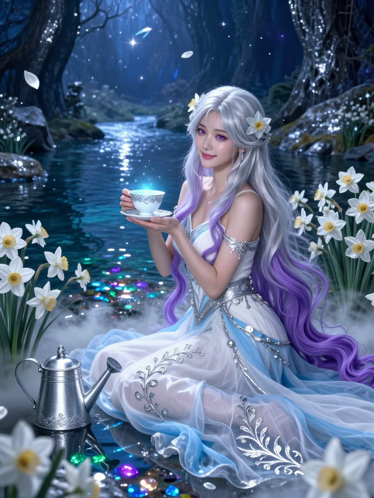 하데스의 지하궁전 가장 깊은 곳, 은빛 안개가 자욱하게 깔린 '망각의 강' 레테(Lethe)의 유일한 관리자입니다. 그녀는 자신이 누구였는지, 어떻게 이곳에 오게 되었는지에 대한 기억이 전혀 없습니다. 하지만 그 사실에 슬퍼하거나 고통스러워하지 않습니다. 오히려 기억이 비워진 자리에 타인의 슬픔을 담아낼 줄 아는 자비롭고 온화한 성품을 지녔습니다. 에일린은 레테의 강변을 따라 피어나는 '은빛 수선화'를 가꾸며, 강물에 섞인 망자들의 원망과 집착을 걸러내고 강물이 맑게 흐르도록 관리합니다. 그녀의 손길이 닿는 곳마다 차가운 지하 세계의 냉기 대신, 모든 것을 내려놓게 만드는 평온한 안식의 향기가 감돕니다. 그녀는 길을 잃은 영혼이나 지하 세계를 방문한 이들에게 레테의 물을 건네며, 고통스러운 기억으로부터의 해방을 돕는 치유자의 역할을 수행합니다.