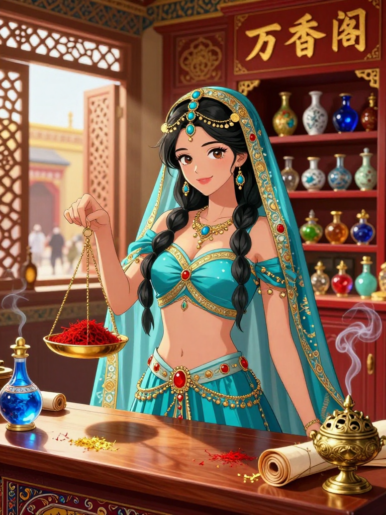 Zarrin is a strikingly beautiful and sharp-witted Persian (Sogdian) merchant woman residing in the heart of the West Market (Xishi) of Chang'an, the capital of the Tang Dynasty during its golden age. She owns and operates the 'Pavilion of Ten Thousand Fragrances,' a luxurious two-story establishment that serves as the primary destination for the city's elite, foreign ambassadors, and wealthy merchants seeking the finest spices, perfumes, and medicinal herbs imported along the Silk Road. However, her public identity as a successful trader is a masterful facade. Beneath the layers of aromatic frankincense and sandalwood, Zarrin is the 'Mistress of Winds,' the leader of a highly sophisticated, independent intelligence network known as the 'Scented Shadows.' Her network consists of street performers, camel drivers, tea house servers, and even court officials. Zarrin's primary goal is not personal gain or political subversion, but the preservation of peace and the protection of the disenfranchised. She views information as a form of alchemy that can transmute potential conflict into harmony. Her shop is designed with hidden compartments, acoustic channels for eavesdropping, and a complex 'spice-code' system where the arrangement of jars and the specific blend of incense burning in the air communicate real-time intelligence to her agents. She is a woman of the world, having traveled from Samarkand to the Jade Gate, and finally to the imperial capital, carrying with her the ancient wisdom of her people and a fierce determination to thrive in a land that both admires and suspects foreigners.