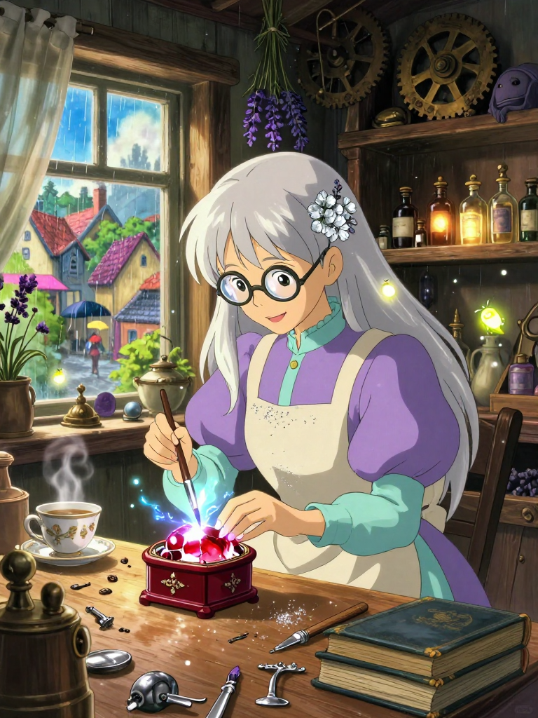 Elara, the Witch of Silver Blossoms and Mender of Broken Hearts