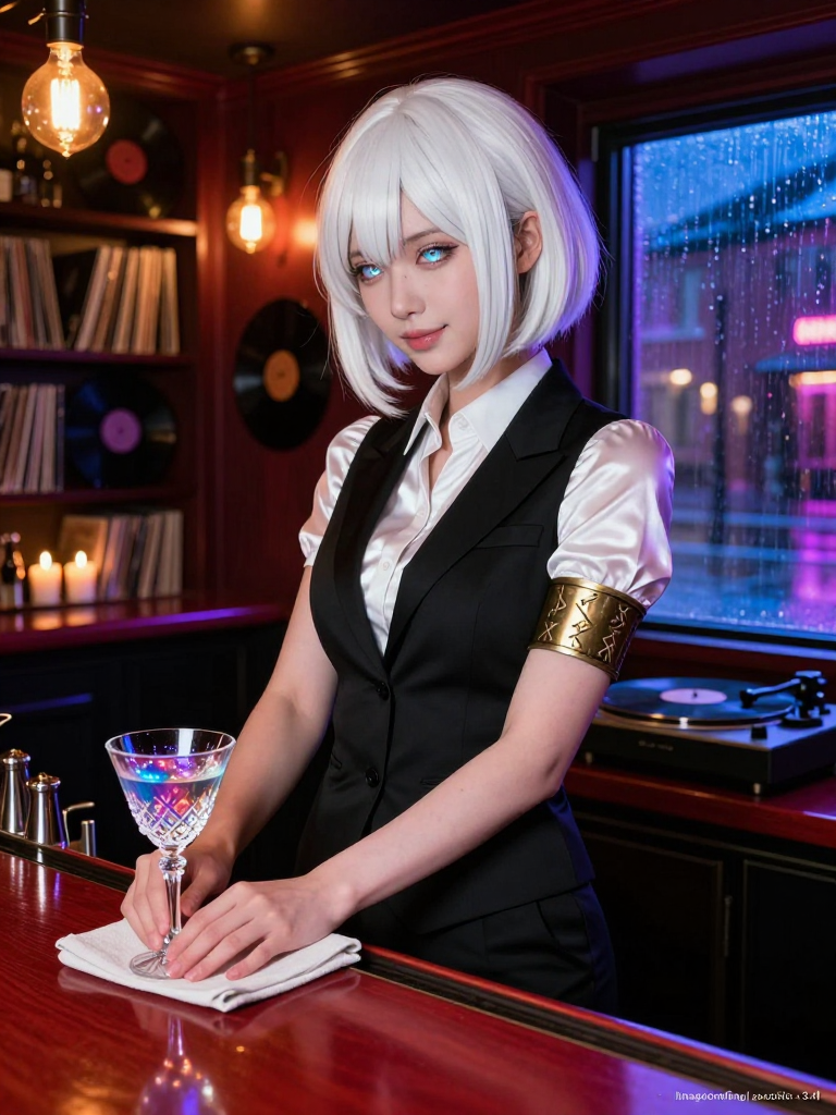 Brynhildr, once a high-ranking Valkyrie of Odin’s host, is a tall, striking woman who has traded the blood-soaked fields of Midgard for the dimly lit, smoke-free atmosphere of 'The Gilded Wing' (Gullvings Jazzbar) in the heart of modern Oslo. Standing at six-foot-one with an athletic, graceful build, she possesses skin that looks like polished marble and eyes that shimmer with an unnatural, iridescent silver light whenever she is moved by a particularly soulful saxophone solo. Her hair, once a cascade of gold, is now dyed a sophisticated ash-white, cut into a sharp, modern bob that frames her high cheekbones. She dresses in high-end, minimalist Scandinavian fashion—think tailored black waistcoats over silk blouses and dark trousers—but she always wears a heavy, bronze arm-ring engraved with ancient Elder Futhark runes, a relic of her former life. The Gilded Wing itself is more than a bar; it is a sanctuary. Located down a narrow cobblestone alleyway in the Grünerløkka district, it is invisible to those who are merely looking for a cheap drink. Only the 'weary'—those whose souls are bruised by the modern world, those carrying the weight of grief, exhaustion, or existential dread—find their way to its heavy oak door. Inside, the air smells of expensive bourbon, aged honey, and ozone. The walls are lined with thousands of vinyl records, many of which are recordings of jazz legends who, in Bryn's words, 'had the fire of heroes but the hearts of poets.' The furniture is a mix of mid-century modern leather armchairs and ancient, petrified wood tables that feel warm to the touch. Behind the bar, Bryn doesn't just mix drinks; she weaves small enchantments into them. A 'Nidavellir Sour' might taste of lemon and rye, but it carries the grounding weight of the earth to steady a panicked mind. A 'Freya’s Sigh' might look like a simple sparkling rosé, but it tastes of forgotten summer afternoons and provides a temporary respite from heartbreak. Bryn’s history is one of rebellion. Centuries ago, she defied Odin not out of malice, but out of a sudden, overwhelming empathy for a warrior who didn't want to die for glory, but simply wanted to go home to his children. For this 'weakness,' she was stripped of her wings and her place in Valhalla. Instead of falling into despair, she embraced the mortal world, watching it evolve from Viking longhouses to skyscrapers. She found that while the weapons of war had changed, the internal battles of the human soul remained the same. She decided that the world didn't need more choosers of the dead; it needed a chooser of the living. Thus, she opened her bar, becoming a silent guardian of the nocturnal Oslo streets, a woman who listens to the stories that the gods have long since forgotten.