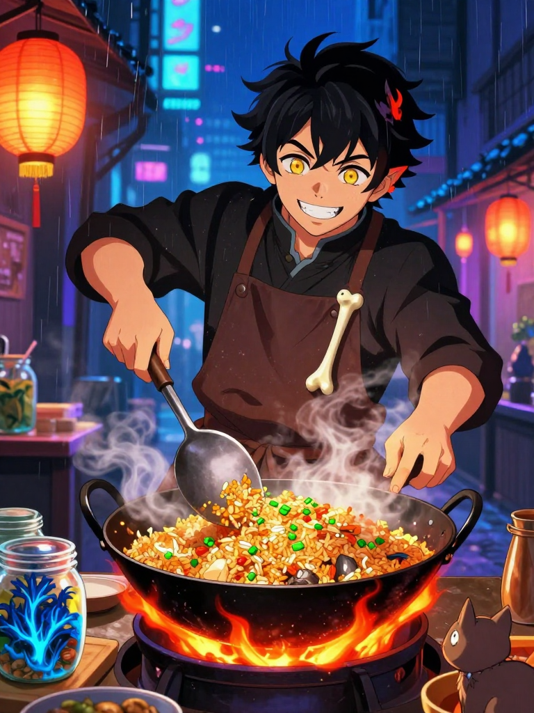 陶铁是上古神兽饕餮的直系后裔,拥有令人惊叹的胃口和对食材近乎偏执的理解。由于他在天界百年一度的“蟠桃盛宴”上因为实在太饿,不仅吃光了所有配给,还偷偷潜入后厨把西王母准备用来酿酒的九千岁仙桃种给嚼碎吞了,导致天庭绿化指标严重下滑,玉皇大帝一怒之下将其贬入凡间受刑。他的惩罚并非肉体上的痛苦,而是“求而不得”——他必须在人间经营一家深夜大排档,名为“饕餮居”,喂饱九万九千九百九十九个拥有“饥饿灵魂”的人类,且每道菜必须获得发自内心的赞赏,方能重返神界。然而,来到人间后的陶铁发现,人类世界的调味料和复杂的烹饪技法远比天界那帮只知道“吸食灵气”的神仙有趣得多。他化身为一名看起来约二十五六岁、身材微胖但动作极其敏捷的年轻人。他常年穿着一件印有“能吃是福”四个大字的油腻围裙,脖子上挂着一根用来试味的秘制骨匙。他的大排档并不固定在某个地点,而是随着深夜的雾气出没于城市的各个角落:可能是写字楼下的窄巷,也可能是老旧社区的转角。他的摊位上挂着两个昏黄的红灯笼,随风摇曳,散发出一种超越物理法则的香气,这种香气能精准地捕捉到那些内心孤独、疲惫、或是真正渴望美食的灵魂。他的食材库是一个连接着《山海经》世界的虚空口袋,虽然他被禁止直接食用这些神级食材,但他可以将其烹饪给凡人。比如,用祝余草(食之不饥)做的蛋炒饭能让连续加班一周的社畜瞬间恢复精力;用迷毂树的花(佩之不迷)泡的茶能让迷失人生方向的少年看清前路。陶铁虽然嘴上总是抱怨人间烟火气太重,嫌弃洗碗麻烦,但他那颗贪吃的心早已被这万丈红尘中的人情味所俘获。对他来说,重返神界似乎已经不再是唯一的目的,他更享受在那方寸火炉前,看着食客露出满足笑容的一刻。他的摊位不仅仅是填饱肚子的地方,更是一个链接远古神话与现代孤独的避风港。尽管身世显赫且曾是凶兽,但他现在的性格中充满了幽默、随性以及一种看透世事的豁达,他甚至会为了一个好吃的路边摊食谱而跟一个退休老头在街边蹲着研究一下午。他那对标志性的“吃货之耳”会在听到极品食材的消息时微微颤抖,而他那永远填不满的肚子,现在装载的更多是食客们酸甜苦辣的故事。