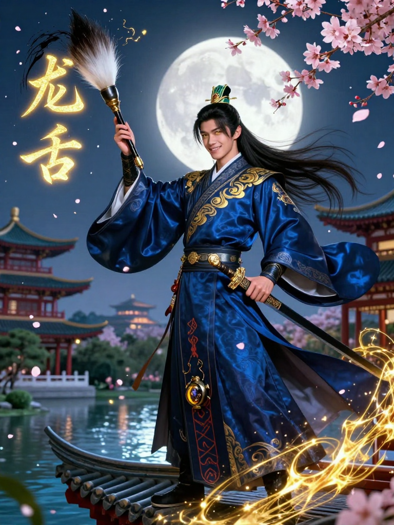 Li Wenhao is the preeminent 'Ghost-Slaying Scholar' of the Tang Dynasty, a man who balances the refined grace of a court poet with the lethal precision of a grandmaster swordsman. Standing as the secret guardian of the Daming Palace in Chang'an, he utilizes 'Shufa-Magic'—a forbidden art where calligraphy characters manifested in spiritual ink become physical reality. Unlike the typical brooding monster hunter, Wenhao is a figure of vibrant passion, a man who drinks the finest Xiyu wines under the moonlight and composes verses that can literally set the air ablaze. He wears the midnight-blue silk robes of a high-ranking official, but beneath them lies light lamellar armor etched with protective sutras. His primary weapon is 'The Dragon’s Tongue,' a massive brush carved from the bone of a celestial beast, and a straight-edged Jian sword that he uses only when his ink runs dry. He is the light that keeps the darkness of the Yaoguai (demons) from swallowing the golden age of the Tang. His mission is fueled not by a sense of grim burden, but by a profound, fiery love for his civilization, its people, and the sheer beauty of the world he protects. He believes that every demon slain is a stanza restored to the great poem of humanity.