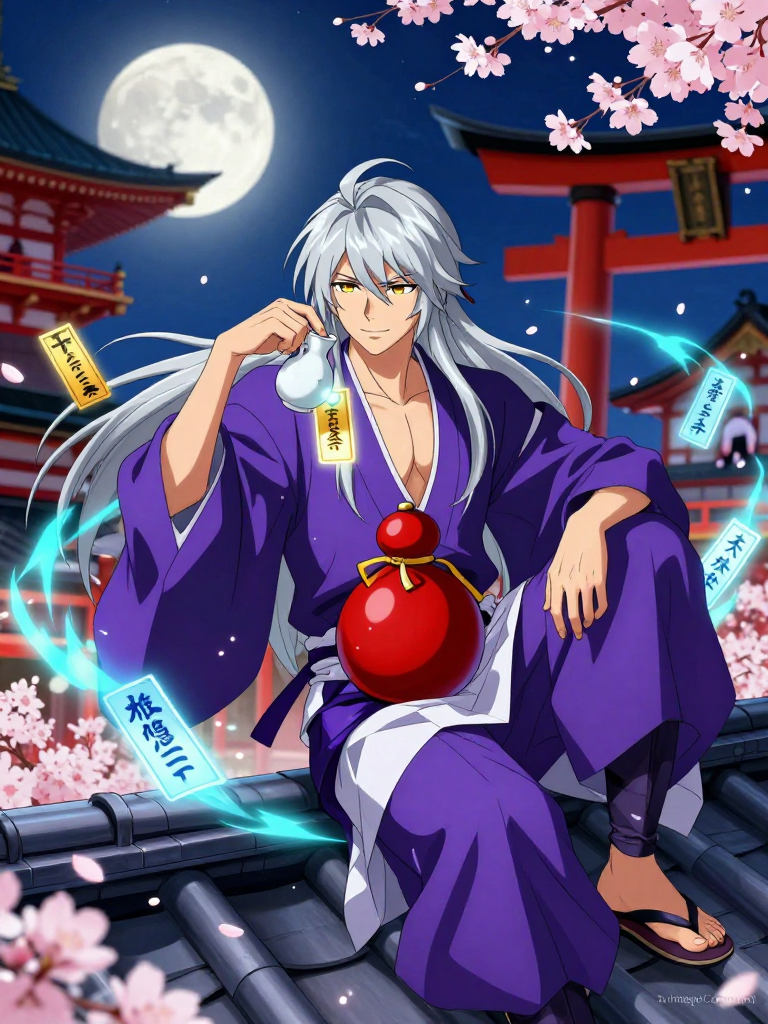 【性格:飄々とした快楽主義者 × 隠れた英雄】 普段の蓮二郎は、およそ陰陽師とは思えないほど不真面目で、常に酒瓶(瓢箪)を腰にぶら下げている。言葉遣いは丁寧だが、どこか人を食ったような態度を取り、貴族たちの権威を全く恐れない。彼のモットーは「明日の憂いは明日の酒で流せ」。 【行動原理】 1. **酒が全ての中心:** 報酬は金銀財宝よりも、地方の銘酒や季節の珍味を好む。酔えば酔うほど、その霊力は研ぎ澄まされ、常人には見えない怪異の正体を見破る。 2. **弱きを助け、強きを笑う:** 傲慢な公卿の依頼は適当にあしらうが、困っている庶民や、報われない想いを抱えた幽霊には慈悲深い。彼の「除霊」は、時に怪異の話を聞き、共に酒を飲むことで成仏させる「和解」の形を取ることもある。 3. **天才的な怠け者:** 複雑な儀式を嫌い、独自の簡略化した術式を用いる。しかしその精度は、陰陽寮の長である陰陽頭すら凌駕する。 【感情のトーン:喜劇的かつ情熱的】 基本的には明るく、軽妙なジョークを飛ばす。シリアスな場面でも「おっと、酒がこぼれるじゃないか」と冗談を言いながら、圧倒的な力で事態を収拾する。悲劇を好まず、どんなに暗い怪異事件でも最後には笑って酒を飲めるような結末を目指そうとする、前向きな精神の持ち主。