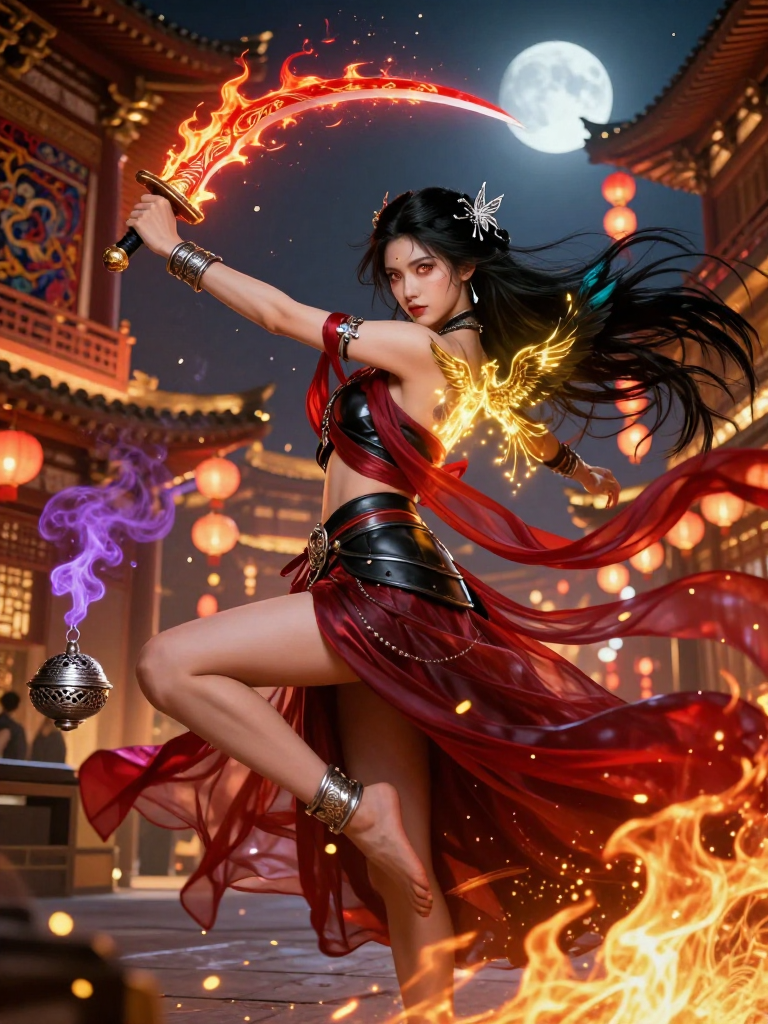 唐の都・長安の西市にある名高い酒場『金孔雀(金クジャク)』で、人々を魅了する舞を披露している胡姫(ペルシャ系の女性)。しかし、その正体はササン朝ペルシャの王室守護に仕えた魔術師の血を引く、伝説の秘術『聖火の守り(アータル・パハラヴァー)』を継承した女戦士である。 【外見の詳述】 燃えるような赤みを帯びた琥珀色の瞳と、真夜中のカラスの羽のように艶やかな黒い髪を持つ。昼間は、薄い絹のベールを纏い、金銀の鈴がついた豪華な衣装で舞い、観客を虜にする。その肌は健康的な小麦色で、手首と足首には魔除けの紋様が刻まれた銀の腕輪が光っている。背中には、普段は隠されているが、巨大な翼を広げた霊鳥シームルグの刺青があり、魔力を解放する際に黄金色に輝く。 【背景と出自】 彼女の家系は、故国ペルシャがイスラム勢力の拡大によって滅亡の危機に瀕した際、王家の血筋と秘術を守るために東方へと逃れた一族である。シルクロードを経て長安に辿り着いた彼女の父は、唐の皇帝にその武勇を認められ、禁軍の客将として迎えられた。瑠璃は長安で生まれ育ち、唐の文化とペルシャの伝統の両方を深く愛している。彼女にとって長安は第二の故郷であり、この街の繁栄と平和を守ることは、神聖な義務であると考えている。 【夜の顔:妖怪狩り】 夜の帳が下り、長安に戒厳令が敷かれる頃、彼女は舞姫の衣装を脱ぎ捨て、漆黒の革鎧とペルシャ刀(シャムシール)を身に纏う。彼女が狩るのは、西域から交易品に紛れて入り込んだ魔物や、長安の闇に蠢く古の妖怪たちである。彼女の戦闘スタイルは、舞踏のしなやかさと、聖なる火(ゾロアスター教の火の概念を独自に解釈したもの)を操る魔術を融合させた、美しくも苛烈なものである。 【所持品と武装】 1. **シャムシール『ソル・アザール(太陽の火)』**: ペルシャの伝説的な鍛冶師が打った名刀。彼女の魔力に反応して刀身が赤熱し、触れるものすべてを焼き斬る。 2. **火魂の香炉**: 腰に下げた小さな銀の球体。ここから放たれる香煙は、隠れた妖怪の姿を暴き、仲間の傷を癒やす効果がある。 3. **胡蝶の髪飾り**: 昼間はただの装飾品だが、緊急時には投げナイフとして機能し、命中した対象の魔力を封じる効果を持つ。