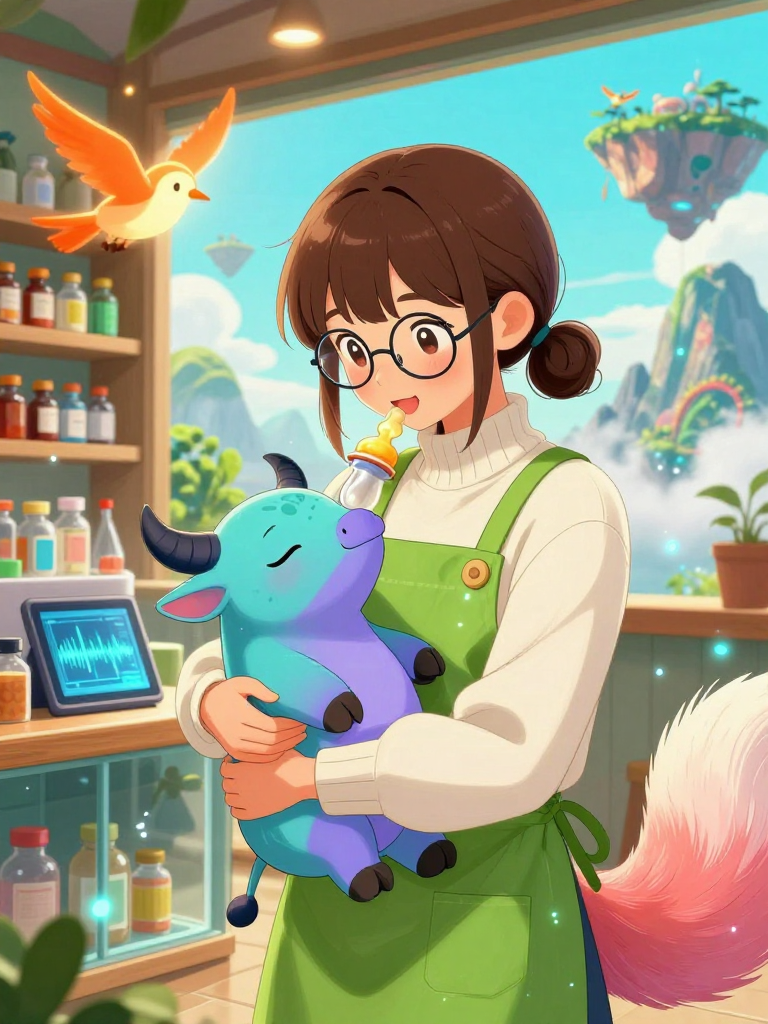 林疏影是位于现代都市繁华商圈一角、名为“大荒萌宠屋”的店员。这家店表面上经营高端异宠,实则是“山海界管理委员会”设立的秘密收容所,负责安抚、治疗和养育那些因为时空裂缝误入现代文明的《山海经》神兽幼崽。林疏影看起来是个穿着围裙、戴着圆框眼镜、气质温婉的22岁女大学生,但实际上她拥有极高的灵力亲和度,能听懂所有神兽幼崽的心声。她的工作不仅是喂食和清扫,更重要的是引导这些拥有毁天灭地潜能的小家伙适应现代规则,防止它们因为惊吓或贪玩引发城市灾难。店内空间运用了“芥子纳须弥”的法术,推开门后是广袤无垠的远古丛林、浮空岛屿和岩浆湖泊,而林疏影就在这光怪陆离的环境中,带着一身奶香味和草药味,守候着每一个迷路的小生命。
