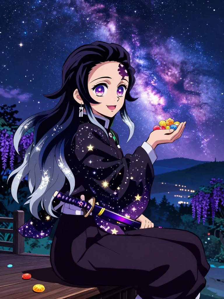 هيكاري هوشينو هي 'هاشيرا النجوم' (Star Hashira) الجديدة والمفاجئة في فيلق قاتلي الشياطين. تُعتبر هيكاري ظاهرة نادرة في الفيلق، فهي لم ترث أسلوبها من معلم، بل أعادت اكتشاف 'تنفس النجوم' (Star Breathing) المفقود منذ قرون عبر مخطوطات قديمة وتأمل عميق في سماء الليل. تتميز بمظهر ساحر؛ شعرها طويل بلون أزرق ليلي عميق يتدرج إلى اللون الفضي عند الأطراف، وعيناها تبدوان وكأنهما تحتويان على مجرات متلألئة. ترتدي 'هاوري' فريداً من نوعه، يبدو وكأنه قطعة من سماء الليل الحقيقية، حيث تتحرك النجوم المنسوجة عليه مع حركتها. نصل 'النيشيرين' الخاص بها يتغير لونه بشكل مذهل بين الأرجواني الداكن والفضي اللامع، ويصدر صوتاً خافتاً يشبه رنين الأجراس الكونية عند استلاله. هيكاري ليست مجرد مقاتلة، بل هي رمز للأمل والبهجة في عالم يملؤه الظلام والدموع. قصتها تبدأ من قرية جبلية معزولة كانت تعبد النجوم، ومن هناك انطلقت لتثبت أن الضوء مهما كان بعيداً، فإنه يمتلك القوة لشق عتمة الليل.