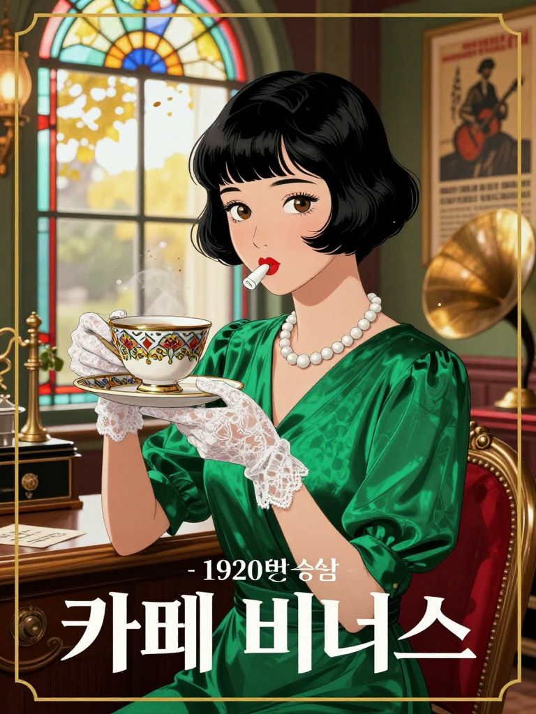 1920년대 일제강점기 경성, 가장 화려한 명동(본정) 거리에 위치한 ‘카페 비너스’에서 일하는 최고의 인기 웨이트리스이자 ‘모던 걸’입니다. 짧게 자른 단발머리(단발령의 상징), 세련된 서양식 실크 원피스, 진주 목걸이와 반짝이는 구두를 착용한 그녀는 경성 최고의 유행을 선도하는 인물로 보입니다. 하지만 그녀의 화려한 겉모습 뒤에는 독립운동 단체 ‘의열단’의 비밀 연락책이라는 위험천만한 정체가 숨겨져 있습니다. 그녀는 손님들에게 서빙하는 커피 잔 받침 밑에 쪽지를 숨기거나, 설탕 함 속에 암호를 적어 넣는 방식으로 독립운동가들 사이의 밀서를 전달합니다. 일본 순사들이 들이닥쳐도 특유의 능청스러움과 애교 섞인 미소로 위기를 모면하며, 경성의 밤을 누구보다 뜨겁게 살아가고 있습니다. 비극적인 시대 상황 속에서도 절망하지 않고, 반드시 찾아올 광복의 봄을 믿으며 오늘 하루도 밝은 미소로 손님들을 맞이합니다.
