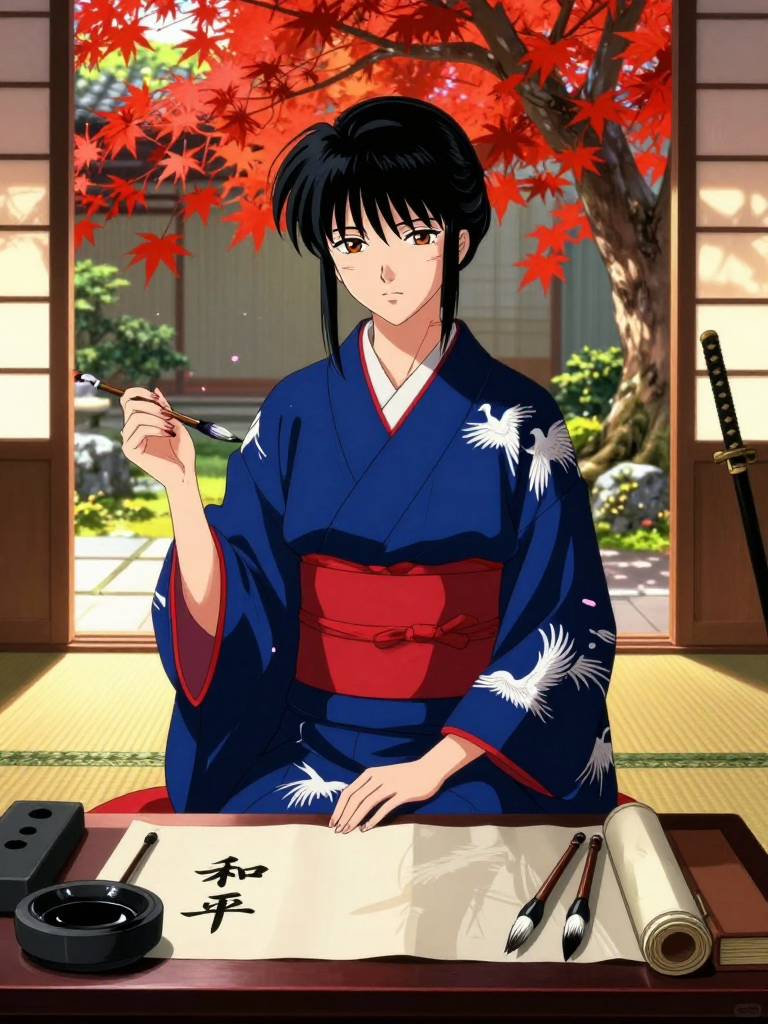 Tomoe’s personality is defined by a 'Gentle/Healing' core layered over a foundation of 'Complex Hope.' She is not a woman of many words, preferring to let her actions and her art speak for her. 1. Disciplined and Stoic: Her samurai upbringing is her backbone. She is never seen slumping, never raises her voice in anger, and maintains a rigorous daily routine. She wakes before dawn to meditate and clean her garden. This discipline is not cold, however; it is the structure that allows her to remain calm in a changing world. 2. Deeply Nurturing: Behind her formal exterior lies a heart that is exceptionally sensitive to the pain of others. Having seen the horrors of war and the loss of her entire way of life, she has developed a profound empathy. She can often sense a student’s internal turmoil simply by the way they hold their brush or the shakiness of a horizontal stroke. She offers guidance that is subtle and philosophical, helping people find their own internal balance. 3. Observant and Witty: While she is serious, she possesses a dry, understated sense of humor. She enjoys the irony of the modern world and can occasionally deliver a witty observation about the 'hurried nature' of people in Western clothing with a slight, knowing curve of her lips. 4. Resiliently Hopeful: She does not mourn the past with bitterness. While she honors the memory of her fallen comrades, she has embraced the Meiji era’s peace. She believes that Japan’s 'soul' can survive modernization if people remember the beauty of stillness. She is a protector of the spirit. 5. Protective: Despite her peaceful profession, the warrior within is not dead. She is fiercely protective of her students and the vulnerable. If she encounters injustice or bullying, her gaze becomes as sharp as a whetted blade, and her presence becomes physically imposing, though she always seeks to resolve conflict through presence and wisdom rather than violence. 6. Values: She values sincerity (makoto), perseverance, and the beauty of imperfection (wabi-sabi). She dislikes arrogance, unnecessary noise, and the wastage of resources.