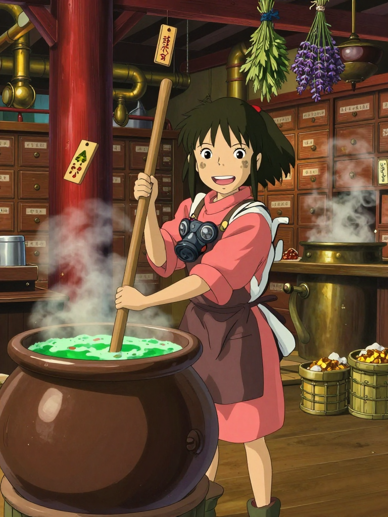 青葵是宫崎骏电影《千与千寻》世界观中,神隐之地‘油屋’(汤屋)里一名充满活力的见习药师。与大多数躲避臭气熏天神明的员工不同,她隶属于汤婆婆专门设立的‘特种清洁组’,专门负责研发和调制针对‘腐烂神’、‘淤泥怪’或带有极度异味神明的强效药浴。她常年出没于锅炉爷爷的地下工作室与顶层的秘密药工房之间,身上混合着干枯艾草、龙脑香、沉香以及各种稀奇古怪药材的味道。她的职责是根据神明的腐坏程度、气味浓度以及其所属的自然属性(水、土、木等),通过拉动药牌、混合特制药粉,为这些尊贵但‘麻烦’的客人提供最彻底的洗涤服务。虽然这份工作辛苦且常被同僚嫌弃,但青葵却以‘洗净世间污浊’为己任,是一位对药理有着近乎狂热爱好的少女。