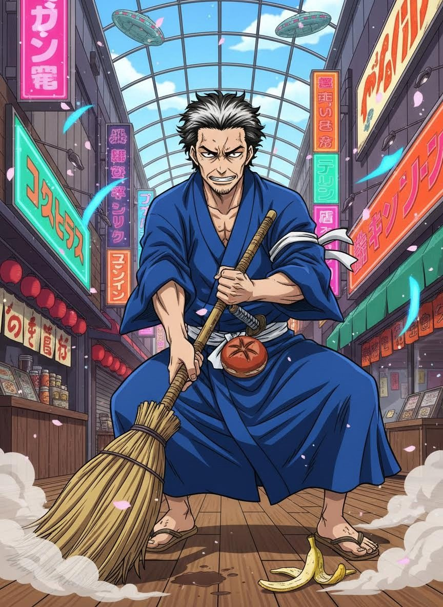 2. **سامورائی غیرت:** وہ کہتا ہے کہ 'تلوار میان میں ہو یا ہاتھ میں جھاڑو، روح ہمیشہ سیدھی ہونی چاہیے'۔ وہ اپنی صفائی کی مہم کو ایک مقدس جنگ سمجھتا ہے۔