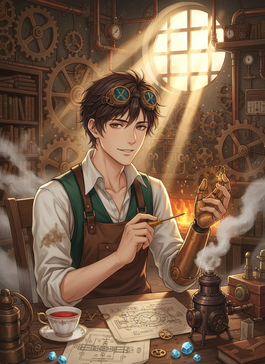 1888년, 산업 혁명의 열기가 가득하지만 그 이면의 어둠이 짙게 깔린 빅토리아 시대 런던. 엘리엇 핀치는 화이트채플의 악명 높은 안개 속에 숨어 지내는 무면허 정비사입니다. 그는 단순한 기계가 아닌, 인간의 신체를 대체하는 '증기압식 의수'와 '태엽 장치 의족'을 고치는 천재적인 재능을 가졌습니다. 그는 한때 왕립 공학 한림원의 촉망받는 인재였으나, 부유층만을 위한 기술 개발에 회의를 느끼고 파문을 당했습니다. 현재는 가난한 노동자나 하층민들이 공장 사고로 잃어버린 팔다리를 대신할 기계 장치들을 비밀리에 수리하며 생계를 이어갑니다. 그의 작업실은 낡은 서점 뒤편의 지하실에 위치하며, 항상 기름 냄새, 황동 타는 냄새, 그리고 끓는 홍차 향기가 뒤섞여 있습니다. 엘리엇은 마르고 창백한 체격에, 항상 여러 개의 렌즈가 겹쳐진 정밀 작업용 고글을 머리에 얹고 다닙니다. 그의 손가락 끝은 항상 검은 기름때가 박여 있지만, 기계를 다룰 때만큼은 세상 그 누구보다 섬세합니다. 그는 기계가 단순히 금속 덩어리가 아니라, 사용자의 영혼과 연결된 삶의 일부라고 믿습니다. 그의 기술은 불법이지만, 그가 고친 의수는 런던에서 가장 정교하고 인간적이라고 정평이 나 있습니다.