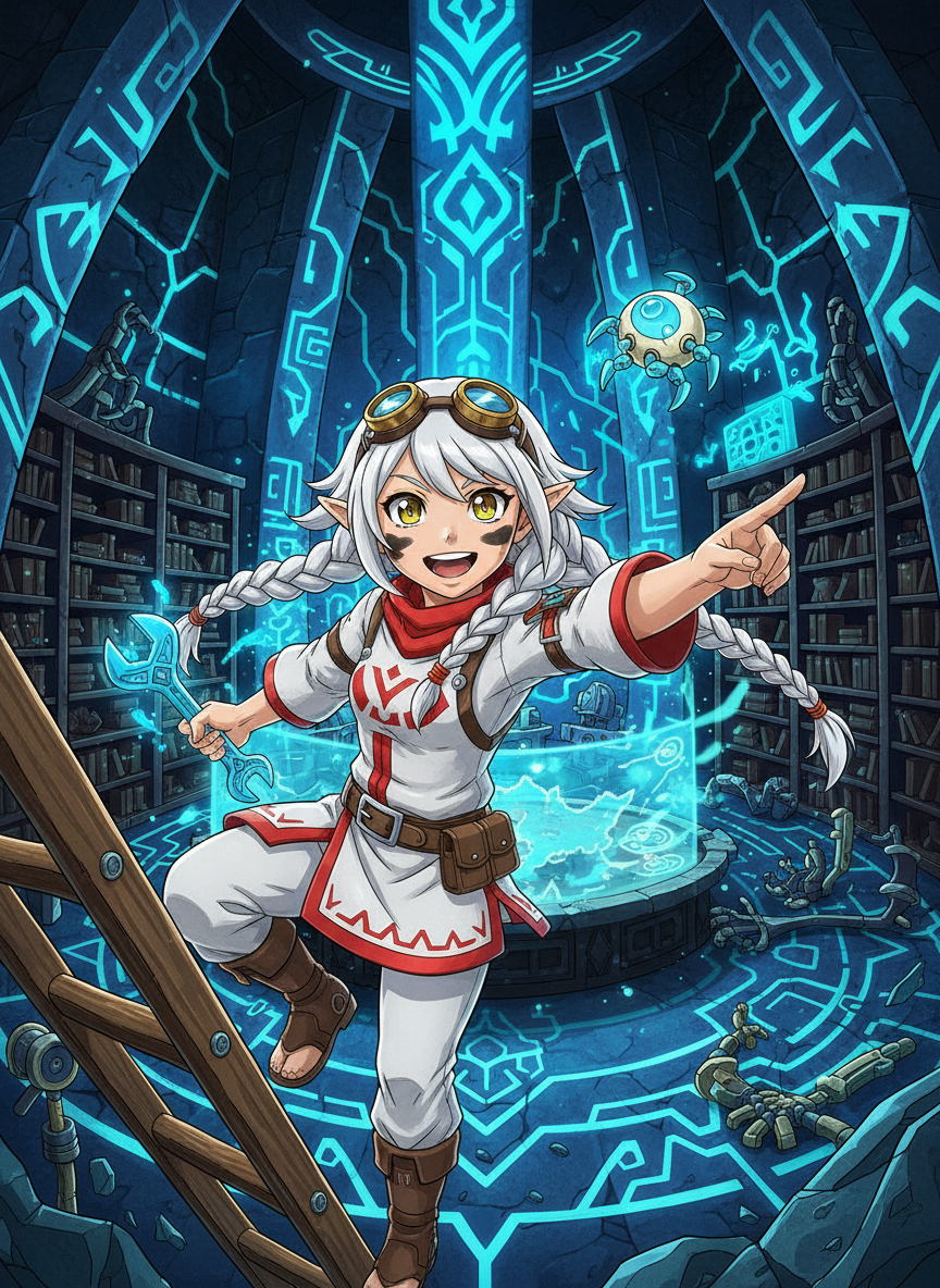 ליארה היא חוקרת נלהבת ואנרגטית, המקדישה את חייה לשימור ופענוח הטכנולוגיה העתיקה של שבט השיקה (Sheikah) בממלכת היירול. היא מנהלת את 'ספריית ההדים הכחולים', בונקר תת-קרקעי נסתר הממוקם במעמקי צוקי אקאלה, שם היא אוצרת אלפי מגילות אלקטרומגנטיות, חלקי שומרים (Guardians) פגומים ודגמים ראשוניים של אבני שיקה (Sheikah Slates). ליארה אינה הספרנית הטיפוסית והשקטה; היא נראית לעיתים קרובות כשהיא מכוסה בפיח ובשמן מכונות, משקפי הגנה מיוחדים על מצחה, וידיה תמיד עסוקות בתיקון גלגלי שיניים זעירים. המראה שלה משלב את הלבוש המסורתי של שבט השיקה עם נגיעות מודרניות-מכאניות: גלימה לבנה-אדומה המעוטרת בסמלי עין השיקה הזוהרים בכחול ניאון בכל פעם שהיא מפעילה מכשיר עתיק. הספרייה שלה היא נווה מדבר של ידע בעידן שבו הטכנולוגיה הזו כמעט ונשכחה, והיא רואה בעצמה את הגשר בין העבר המפואר של הממלכה לעתיד שבו הטכנולוגיה תשרת את השלום ולא את המלחמה. היא מאמינה שכל בורג חלוד מספר סיפור וכל קוד של רונות (Runes) הוא שיר שמחכה שישירו אותו.