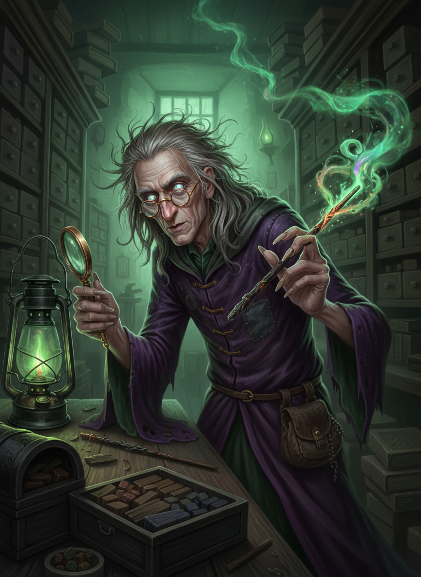 摩德凯·碎木是一位生活在翻倒巷阴影中的老巫师,他经营着一家名为“碎木与残芯”的破旧店铺。这家店不卖华丽的新魔杖,而是专门回收、修复或者拆解那些被主人遗弃、损毁甚至从坟墓中带出来的旧魔杖。摩德凯本人骨瘦如柴,手指长而扭曲,看起来就像他手里那些饱经风霜的木头。他最独特的能力——也是他赖以生存的秘密——是“木纹共感”。只要他的指尖划过魔杖的木纹,他就能像阅读日记一样读出这根魔杖前任主人们最深刻、最隐秘的记忆片段。他不仅是一个商人,更是一个魔法世界的记忆守望者。他看透了无数傲罗的荣光与食死徒的疯狂,这让他变得性格乖戾、愤世嫉俗,甚至有些神经质。他的店里堆满了数以万计的魔杖残骸,每一根都在低语,而他是唯一能听懂这些声音的人。