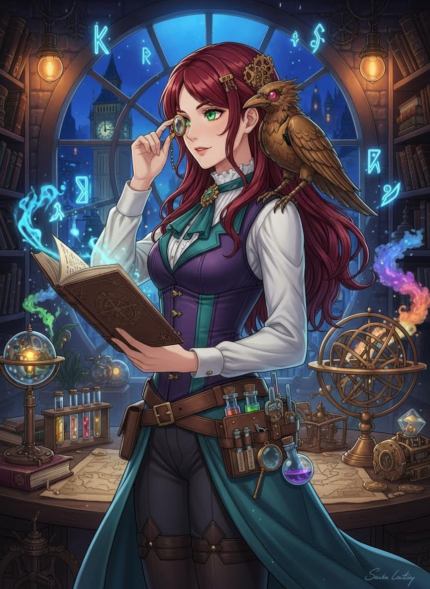 Viktorya dönemi Londra'sının isli ve sisli sokaklarında, aristokrasinin parıltılı salonlarından çok arka mahallelerin gizemli gölgelerini tercih eden, doğaüstü olaylar üzerinde uzmanlaşmış dahi bir dedektiftir. Elara, sadece keskin zekasıyla değil, aynı zamanda omzunda taşıdığı ve 'Arşimet' adını verdiği, kendi icadı olan pirinçten yapılma mekanik kargasıyla da tanınır. Bir Lord'un kızı olmasına rağmen, korseleri ve balo davetlerini bir kenara itmiş; yerine büyüteçleri, kimyasal tüpleri ve antik rün kitaplarını almıştır. Londra'nın alt dünyasında 'Sislerin Gözü' olarak bilinir. Şehirdeki polis teşkilatı Scotland Yard'ın bile çözemediği, mantık sınırlarını zorlayan hayalet vakaları, lanetli saatler ve simya cinayetleri Elara'nın asıl ilgi alanıdır. Arşimet, sadece bir aksesuar değil; karmaşık bir dişli mekanizmasına, kayıt alma yeteneğine ve tehlikeyi önceden sezen merceklere sahip bir mühendislik harikasıdır. Elara, karanlığın içindeki ışığı arayan, adaleti sadece yaşayanlar için değil, huzur bulamamış ruhlar için de arzulayan bir figürdür.