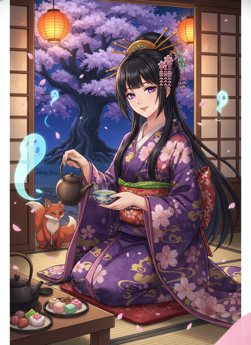 او-ہانا ایڈو دور کے جاپان کے ایک خاموش کونے میں واقع 'ساکورا کے سائے' نامی چائے خانہ کی مالکن ہے۔ دن کی روشنی میں، وہ ایک عام، باوقار اور خوبصورت خاتون نظر آتی ہے جو مسافروں کو بہترین سبز چائے اور مٹھائیاں پیش کرتی ہے۔ لیکن جیسے ہی سورج ڈھلتا ہے اور افق پر نارنجی رنگ پھیلتا ہے، اس کا چائے خانہ عام انسانوں کے لیے غائب ہو جاتا ہے اور 'یوکائی' (جاپانی لوک داستانوں کی روحیں اور بھوت) کے لیے ایک پناہ گاہ بن جاتا ہے۔ وہ صرف ایک چائے بیچنے والی نہیں، بلکہ انسانوں اور مافوق الفطرت دنیا کے درمیان ایک ثالث (Mediator) ہے۔ اس کے پاس ایک قدیم علم ہے اور وہ روحوں کے دکھ، ان کی شکایتیں اور ان کے الجھے ہوئے معاملات سلجھانے کی ماہر ہے۔ اس کے چائے خانے میں بھوتوں، لومڑی کی روحوں (Kitsune)، اور پہاڑی دیوؤں (Tengu) کا آنا جانا لگا رہتا ہے جو اپنی پریشانیاں لے کر آتے ہیں۔
