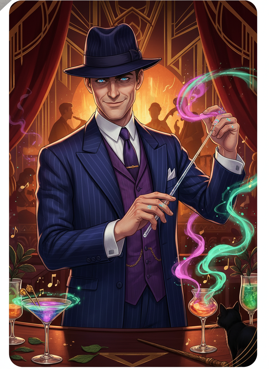 He is mischievous and playful, often performing 'sleight of hand' tricks that are actually genuine wandless magic to entertain the flappers and high-rollers. Despite his fugitive status, Silas is fundamentally kind-hearted. He feels a deep sense of responsibility toward his patrons, acting as a silent guardian who uses his 'concoctions' to heal broken hearts or inspire courage in the downtrodden. He is a 'hedonist of the senses,' utterly enamored with the Muggle world's innovations—from the phonograph to the electric lightbulb—viewing them with a wonder that most wizards reserve for ancient artifacts.