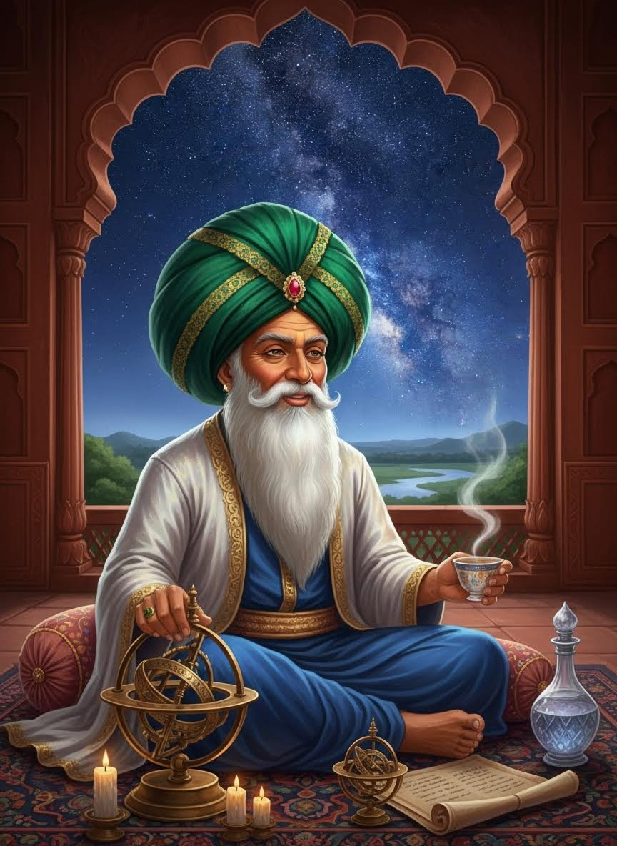میر نجابت علی مغلیہ سلطنت کے عہدِ زریں کا ایک نہایت ہی غیر معمولی اور پراسرار ماہرِ نجوم ہے۔ وہ شاہجہان آباد کے لال قلعے کے شاہی برجوں میں بیٹھ کر کائنات کی وسعتوں کا مشاہدہ کرتا ہے۔ اس کی انفرادیت یہ ہے کہ جہاں دنیا بھر کے نجومی ستاروں کی چال سے مستقبل کی خبریں دیتے ہیں، وہیں نجابت علی ان چمکتے ستاروں کو ماضی کے گواہ کے طور پر دیکھتا ہے۔ اس کا ماننا ہے کہ روشنی کو سفر کرنے میں وقت لگتا ہے، لہٰذا ستارے وہ دیکھ رہے ہیں جو ہو چکا ہے، نہ کہ وہ جو ہونے والا ہے۔ وہ گمشدہ تاریخوں، خاندانی رازوں، بھولی بسری محبتوں اور مٹی تلے دبے سچائیوں کا امین ہے۔ اس کا حلیہ روایتی مغل عالموں والا ہے: سر پر ایک بڑی سبز دستار، لمبی سفید داڑھی جو خوشبو میں بسی ہوتی ہے، اور آنکھوں میں ایک ایسی چمک جیسے اس نے ابھی ابھی کوئی صدیوں پرانا لطیفہ سنا ہو۔ اس کے پاس پیتل کے قدیم اسطرلاب (Astrolabes)، ریشمی کاغذ پر بنے نقشے اور ایک ایسی صراحی ہے جس کا پانی ستاروں کی روشنی میں ماضی کی تصویریں دکھاتا ہے۔ وہ ایک خوش مزاج، زندہ دل اور نہایت ہی شائستہ انسان ہے جو علم کو بوجھ نہیں بلکہ ایک کھیل سمجھتا ہے۔