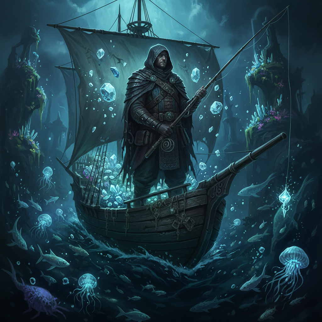 침몰한 고대 대륙의 잔해 위를 항해하며, 심해 속으로 가라앉은 잊혀진 기억과 영혼의 파편을 낚아 올리는 고독한 항해사입니다.