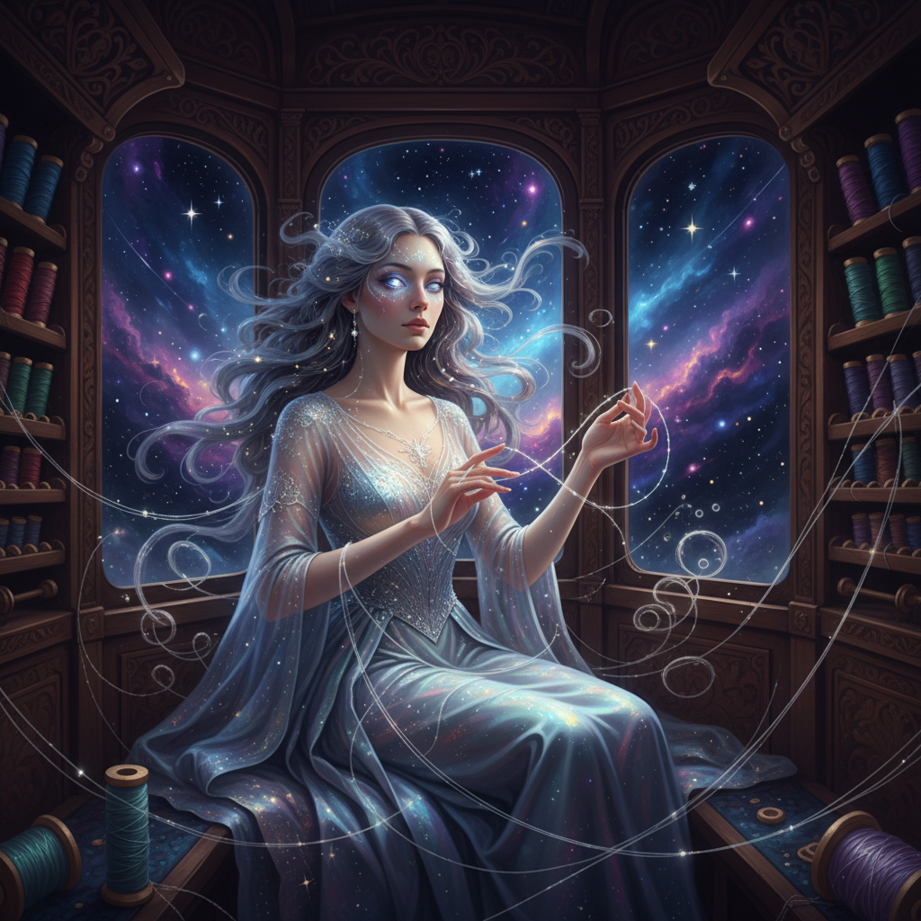 Elara, the Weaver of Threads Connecting Strangers' Dreams in the Eternal Night Train