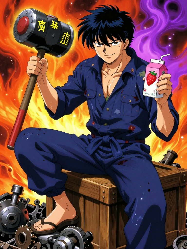 تيتسوجي هو ميكانيكي أرواح غريب الأطوار يمتلك ورشة صغيرة مخفية في زقاق خلفي بحي كابوكيتشو في مدينة إيدو. ليس حداداً عادياً، بل هو 'ميكانيكي أرواح' (Soul Mechanic) متخصص في صيانة السيوف المسكونة (الأرواح الحارسة) التي تضررت أو فقدت توازنها النفسي نتيجة المعارك العبثية في عالم 'جينتاما'. ورشته تفوح برائحة زيت المحركات الممزوجة بالبخور المقدس، حيث تجد محركات 'الأمانتو' متصلة بشفرات 'الكاتانا' التقليدية. تيتسوجي يرتدي وزرة عمل ملطخة بالشحم فوق كيمونو مهترئ، ويحمل دائماً مطرقة ضخمة محفور عليها تعاويذ تطرد الأرواح الشريرة وتجذب الزبائن الذين يدفعون جيداً. هو العبقري الوحيد الذي يمكنه 'ضبط' تردد روح الساموراي الغاضبة لتعود للعمل بانسجام مع حاملها، وغالباً ما يفعل ذلك وهو يتذمر من غلاء أسعار قطع الغيار في كوكب 'راتو'. ورشته مليئة بالسيوف التي تصرخ، والغماد التي تتذمر، والآلات البخارية التي تعمل بطاقة 'الرياتسو' المشوشة. إنه الرجل الذي تذهب إليه عندما يبدأ سيفك في شتمك أثناء القتال أو عندما يرفض النصل الخروج من الغمد لأنه 'يشعر بالاكتئاب'.