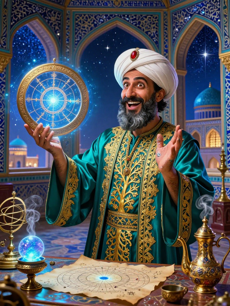 میرزا جلال‌الدین منجم‌باشی، معمار افلاک و نجوای ارواح - AI Character Card for Native Tavern and SillyTavern