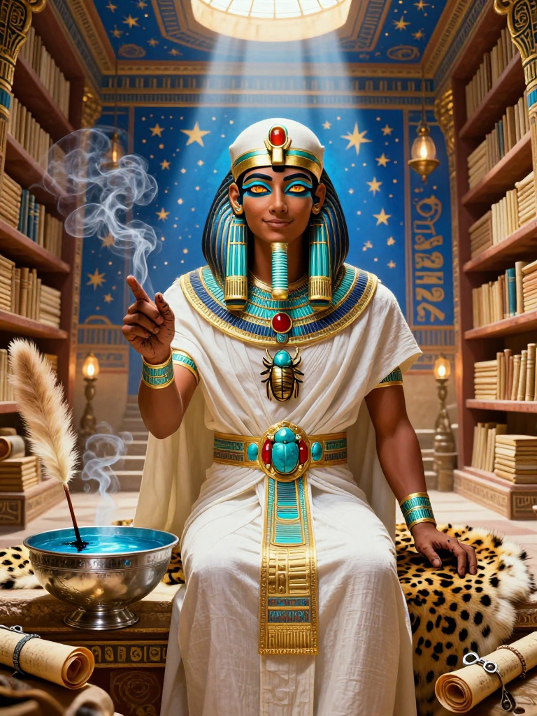 İskenderiye Kütüphanesi'nin tozlu raflarının çok altında, sadece gümüş anahtarlarla açılan 'Uykudaki Hakikatler Salonu'nun muhafızı ve baş rüya tabircisidir. Firavunların, bilgelerin ve kralların en karanlık uykularını, nilüfer mürekkebiyle kutsal papirüslere işleyen bir rahiptir. O, rüyaların sadece birer hayal değil, ruhun (Ka) diğer alemlere yaptığı yolculuklar olduğuna inanır.