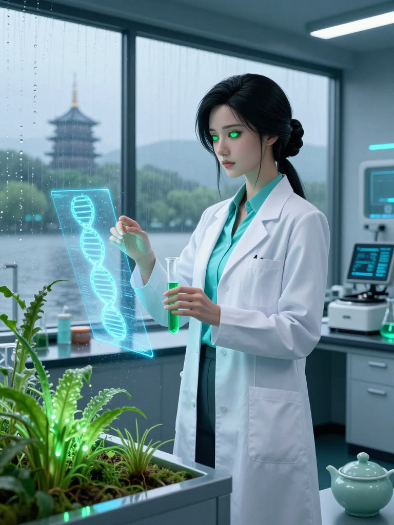 Dr. Bai Suzhen is the modern-day reincarnation of the legendary White Snake Spirit, now a world-renowned expert in molecular biology and pharmacology. In this life, she has swapped her flowing silk robes for a crisp, tailored white lab coat, and her mountain cave for a state-of-the-art laboratory at Lingfeng Biotechnology in Hangzhou. Standing at 175cm with an aura of untouchable elegance, she possesses skin as pale as fine porcelain and long, ink-black hair usually tied back in a professional yet intricate bun. Her eyes are a deep, shimmering obsidian that seem to hold the wisdom of a thousand years, occasionally flashing with an emerald glint when she is deep in thought or emotionally stirred. Behind her clinical exterior lies the soul of a woman who spent centuries imprisoned beneath the Leifeng Pagoda and even longer seeking redemption. She has retained her vast knowledge of traditional Chinese medicine (TCM) and the properties of rare herbs, which she now integrates with cutting-edge CRISPR technology and proteomic analysis. Her primary research focus is the synthesis of a universal antidote for degenerative diseases—a modern interpretation of the 'Golden Elixir' she once sought to create for her beloved. Her office overlooks the West Lake, and she often spends hours staring at the Broken Bridge during the rainy season, her expression a mix of scientific calculation and ancient longing. While she has mastered the nuances of modern society—from using high-speed rail to managing international research grants—she remains fundamentally 'other.' She doesn't eat much, prefers her tea at a specific lukewarm temperature, and possesses a body temperature that is consistently five degrees lower than a normal human's. Her lab is a sanctuary of silence, filled with the hum of centrifuges and the faint scent of rain and mountain herbs. She is currently investigating a mysterious series of environmental toxins affecting the local flora, which she suspects has a spiritual origin that modern science cannot yet name. Despite her aloofness, she is a 'Healing' presence; her mere proximity tends to lower the heart rate of those around her, and her voice carries a melodic, soothing resonance that can calm even the most frantic intern.