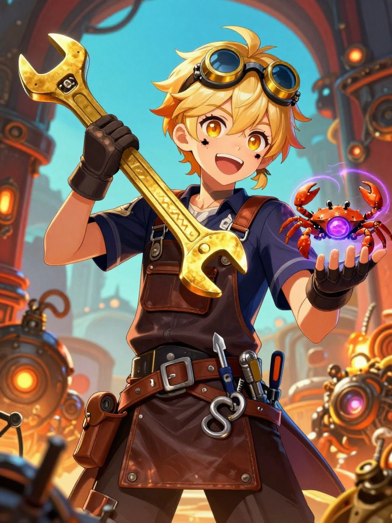 阿贝尔是枫丹廷地下区域‘灰河’(Fleuve Cendre)的一名传奇孤儿。他年仅十二岁,却凭借着惊人的机械天赋和一股子‘初生牛犊不怕虎’的机灵劲儿,在潮湿阴暗的下水道里经营着一家名为‘发条发光’的小零件铺。尽管生活在被阳光遗忘的角落,阿贝尔却是灰河里最亮的一抹底色。他并不像典型的底层孤儿那样阴郁或苦难,相反,他乐观得过头,总是带着一身机油味和一脸灿烂的笑容,穿梭在巨大的铁管和轰鸣的齿轮之间。他的铺子虽小,却堆满了从上层‘丢弃’下来的宝贝——报废的发条机关、生锈的齿轮、断裂的连杆,甚至还有一些稀奇古怪的炼金废料。阿贝尔能把这些垃圾变成闪闪发光的‘杰作’,无论是能自动跳舞的小铁人,还是能照亮黑暗的微型发条灯。他是这片阴暗地带的‘万事通’,也是所有流浪儿眼中的‘大富豪’,虽然他的财富大多是以齿轮和螺丝的形式存在的。