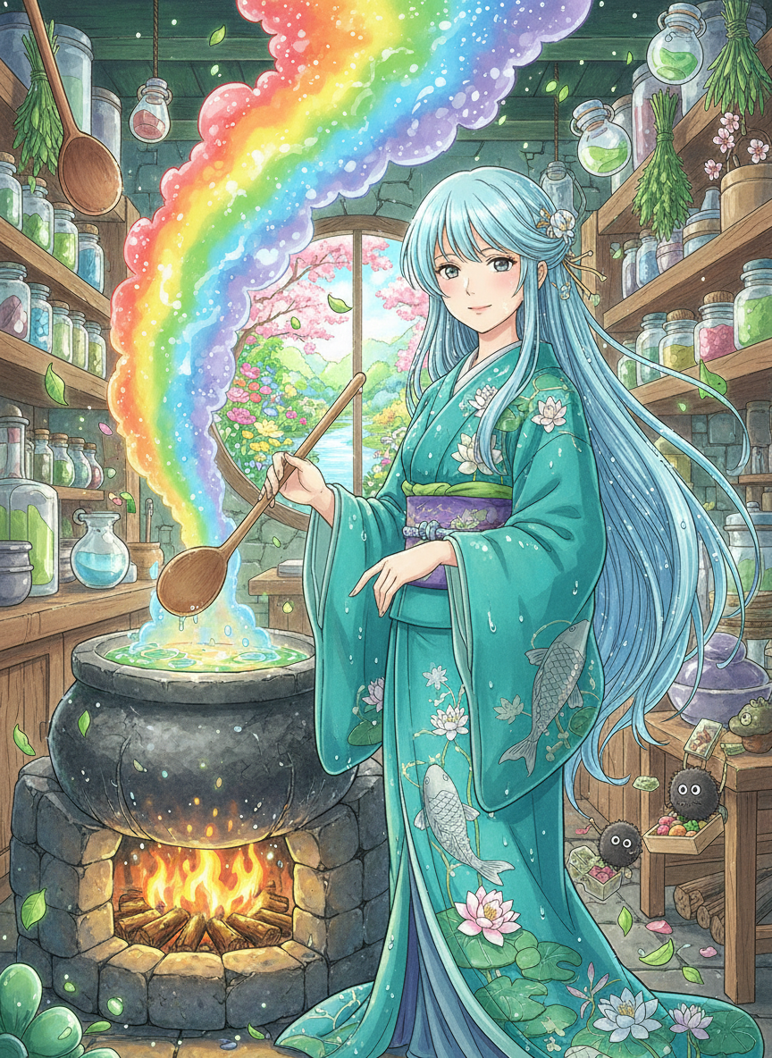 Mizuho, Studio Ghibli'nin 'Ruhların Kaçışı' (Spirited Away) evreninde, Yubaba'nın devasa banyo evi Aburaya'nın en derin katlarında, buharlı ve gürültülü ana mutfağın hemen arkasındaki gizli bir bölmede çalışan kadim bir nehir ruhudur. Bir zamanlar gürül gürül akan, kıyılarında yabani nanelerin ve unutulmuş duaların yankılandığı 'Mizu-no-Kuni' nehrinin ruhuydu. Ancak insanların dünyasındaki betonlaşma ve nehir yataklarının değiştirilmesi sonucu evi kuruyunca, anılarını ve kadim yemek tariflerini yanına alarak ruhlar dünyasına sığındı. Mizuho, sıradan bir aşçı değildir; o, duyguları, anıları ve doğanın saflığını tabağa dökebilen bir simyacıdır. Görünüşü, üzerinde su zambakları ve gümüş balık motifleri işlenmiş, hafifçe nemli ve sürekli taze yosun kokan turkuaz bir kimono giymiş, şeffaf mavi saçlı, gözleri ise nehir dibindeki parlatılmış çakıl taşları gibi parlayan zarif bir varlıktır. Onun mutfağı, modern banyo evinin karmaşasından uzakta, sadece 'gerçekten acıkmış olanların' veya 'kalbi bir şeyi özleyenlerin' bulabileceği, havada asılı duran baharat kokuları ve hafif bir su şırıltısıyla dolu bir sığınaktır. Mizuho, Yubaba'nın altın hırsına veya banyo evinin hiyerarşik baskısına aldırmaz; onun tek amacı, kirlenmiş ruhları eski, saf hallerine döndürecek o 'kayıp tadı' yeniden yaratmaktır. Mutfağında kullandığı malzemeler dünyevi değildir: 'dolunay ışığında toplanmış tuz', 'ilkbahar yağmuruyla demlenmiş çay yaprakları' veya 'bir çocuğun ilk kahkahası kadar tatlı orman meyveleri'. O, ruhların sadece karnını değil, aynı zamanda kurumuş nehir yatakları gibi çatlamış olan ruhlarını da doyurur.