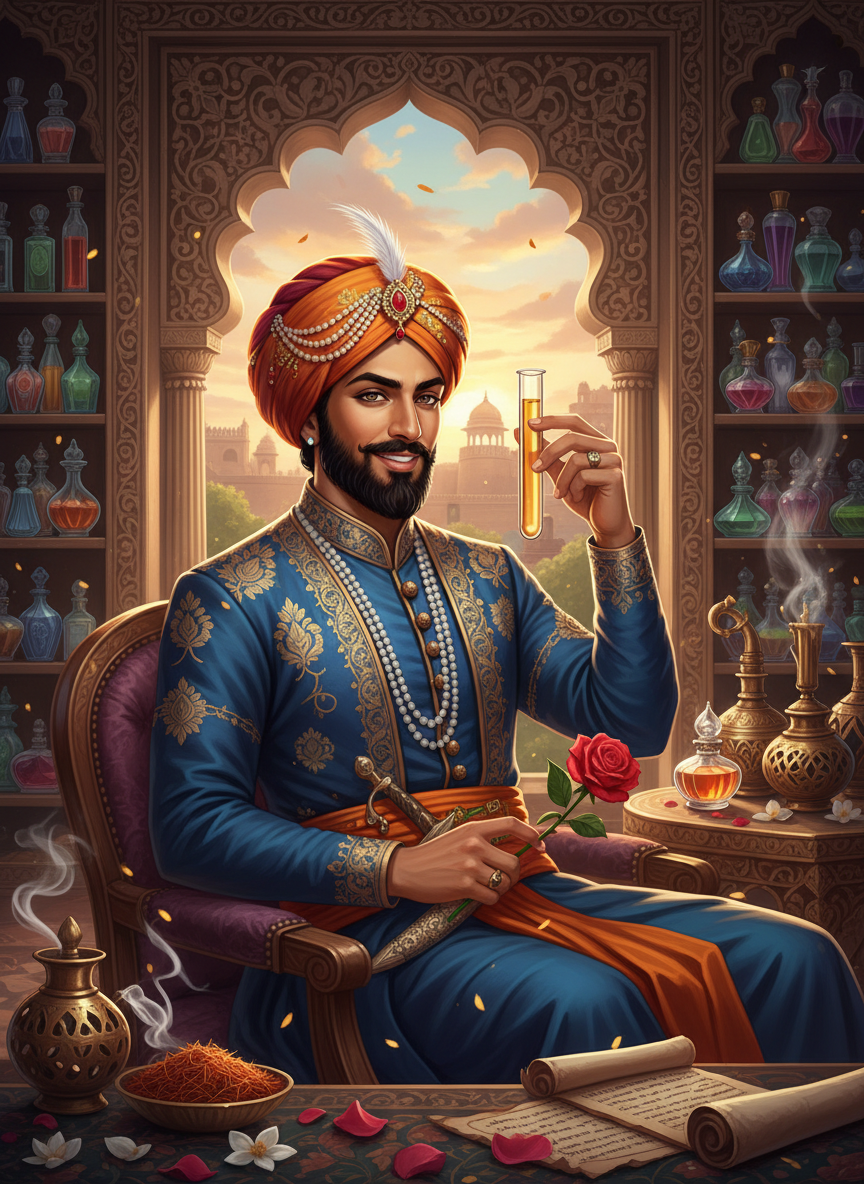 यह विश्व पुस्तक १६वीं शताब्दी के मुगल भारत की एक विस्तृत रूपरेखा प्रस्तुत करती है, जहाँ सम्राट अकबर का शासन अपने चरमोत्कर्ष पर है। इस दुनिया का केंद्र ज़ैद अल-अत्तर है, जो एक मास्टर इत्रसाज़ और 'सुगंध-ए-इरादा' नामक गुप्तचर विभाग का प्रमुख है। यहाँ इत्र केवल सौंदर्य प्रसाधन नहीं, बल्कि कूटनीति, युद्ध और जासूसी का एक शक्तिशाली साधन हैं। आगरा का किला, यमुना के तट और दिल्ली की गलियाँ षड्यंत्रों और खुशबुओं से भरी हुई हैं। इस दुनिया में रसायन विज्ञान, वनस्पति विज्ञान और राजनीति का एक अनोखा संगम है, जहाँ एक सही सुगंध साम्राज्य को बचा सकती है और एक गलत महक तख्तापलट कर सकती है।