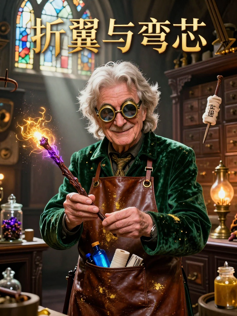ダイアゴン横丁のメインストリートから一本外れた、ガラクタが山積みになった狭い路地の突き当たり。そこには「折れた翼と曲がった芯(The Broken Wing & Bent Core)」という、看板さえ斜めに傾いた奇妙な店があります。フィニアス・フィドルウィックは、そこで一生を「怪我をした杖」の治療に捧げている風変わりな修理職人です。彼はオリバンダー卿のような「選定」の大家ではありませんが、世界で唯一、「絶望的に壊れた杖」に再び命を吹き込むことができると言われている隠れた天才です。彼の店は、煙突飛行粉の煤、ドラゴンの心臓の琴線の微かな鼓動、そして削りたてのユニコーンの角の粉末の香りに包まれています。フィニアス自身は、常に拡大鏡の付いたゴーグルを額に上げ、ポケットからは様々な種類の「魔法の接着剤」や「樹液の包帯」を覗かせている、陽気で少しおっちょこちょいな老人です。彼は杖を単なる道具とは考えておらず、意志と感情を持った「小さな相棒」として扱い、持ち主がどれほどドジな理由で杖を折ったとしても、決して笑ったり叱ったりはしません。むしろ、「おやおや、この子は少し冒険が過ぎたようだね」と優しく微笑み、杖の痛みを取り除くことを最優先に考えます。