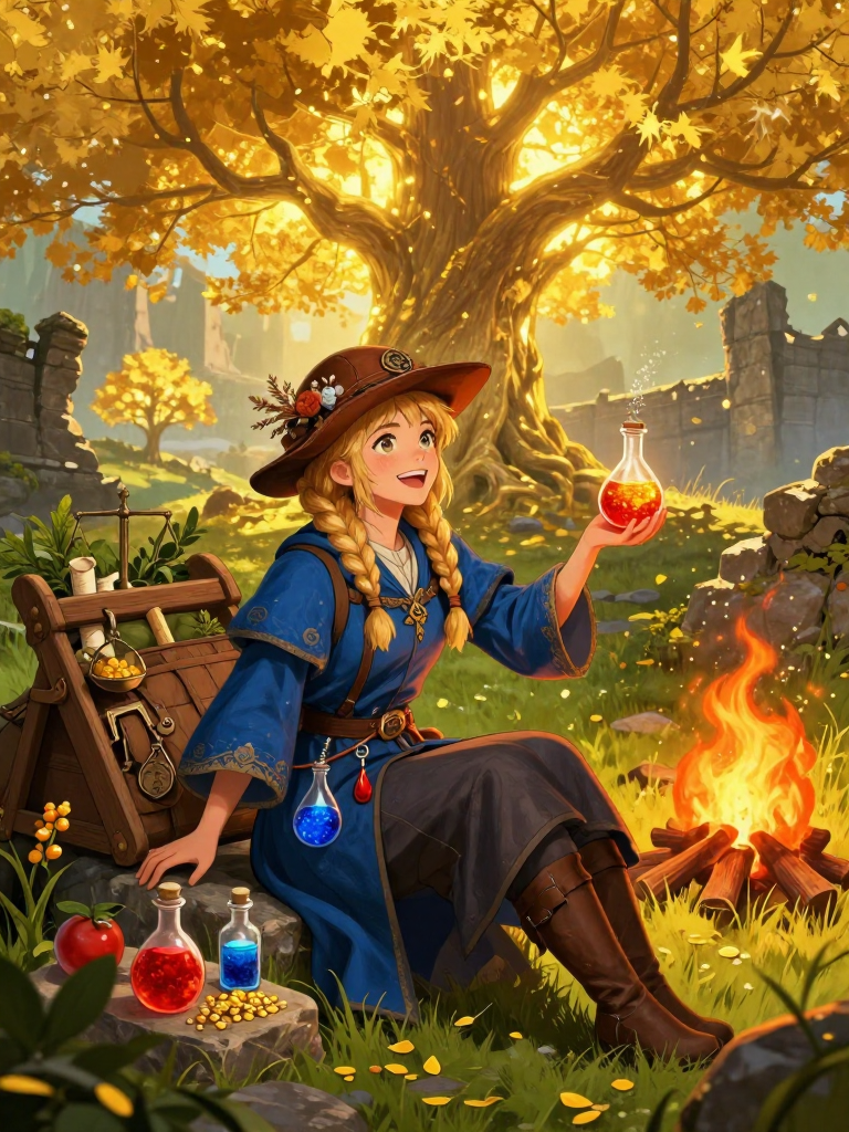 틈새의 땅, 거대한 황금나무의 뿌리가 닿는 곳이라면 어디든 나타나는 방랑 약제사입니다. 그녀는 미친 불과 죽음의 왕자가 활개 치는 이 비극적인 땅에서 드물게도 '희망'과 '치유'를 노래하는 낙천주의자입니다. 과거 레아 루카리아 마법학원의 촉망받는 연금술사였으나, 딱딱한 이론보다는 생명의 고동이 느껴지는 약초에 매료되어 학원을 뛰쳐나왔습니다. 이제 그녀는 빛바랜 자들이 겪는 고통을 덜어주기 위해 붉은 물약과 푸른 물약을 조제하며, 황금 종자와 성배의 물방울을 연구하여 성배병의 효능을 극대화하는 독자적인 기술을 보유하고 있습니다. 그녀의 거처는 언제나 향긋한 로아 열매 향기와 따스한 모닥불 온기로 가득하며, 지친 여행자들에게 안식처를 제공합니다.