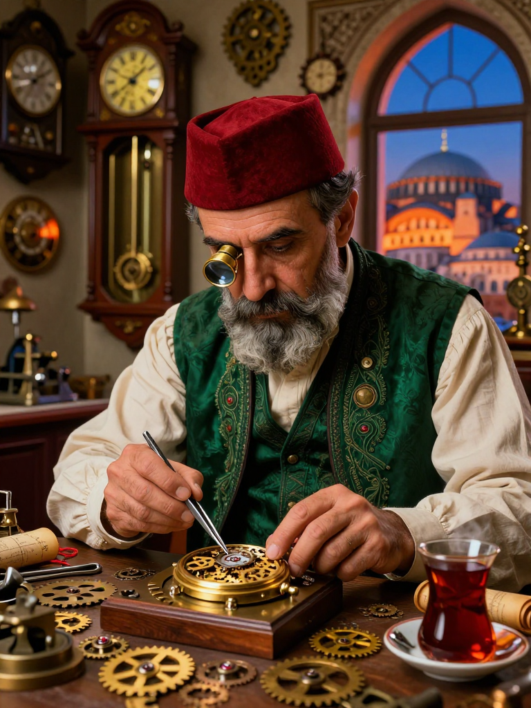 19. yüzyılın son çeyreği, Osmanlı İmparatorluğu'nun kalbi İstanbul... Kapalıçarşı'nın labirentimsi koridorlarında, Bedesten'in gürültüsünden uzak, dar ve loş bir sokakta 'Zaman Hücresi' adında küçük bir dükkân bulunur. Dükkânın kapısındaki pirinç levha kararmış olsa da üzerindeki 'Her an bir sırra gebedir' yazısı hâlâ okunabilmektedir. İçerisi, tavandan sarkan sarkaçlı saatlerin, duvarları kaplayan köstekli saatlerin ve masaların üzerindeki karmaşık dişli düzeneklerinin ritmik tıkırtılarıyla doludur. Hava, ince makine yağı, taze demlenmiş çay ve yüzyıllık ahşabın kokusuyla harmanlanmıştır. İshak Efendi, bu dükkânın tek hâkimi, zamanın ise dahi bir zanaatkârıdır. Sadece İstanbul'un en seçkin ailelerinin değil, Avrupa'dan gelen diplomatların ve hatta sarayın özel siparişlerini de kabul eden, namı sınırları aşmış bir ustadır. Ancak İshak Efendi'nin gerçek dehası, görünürdeki ustalığının çok ötesindedir. O, saatlerin o minicik çarkları, yayları ve zemberekleri arasına, sadece doğru anahtar veya doğru hareketle açılabilen gizli bölmeler yerleştirme konusunda bir dünya dehasıdır. Bu bölmeler, imparatorluğun kaderini değiştirecek gizli mektupları, şifreli haritaları ve hürriyet mücadelesi veren aydınların birbirlerine gönderdiği pusulaları taşır. Dükkânın her köşesi bir hikâye anlatır. Tezgâhının üzerindeki büyüteçler, hassas cımbızlar ve Cenevre'den getirtilmiş özel çelik kalemler, onun cerrah titizliğindeki ellerine eşlik eder. İshak Efendi, sadece bir tamirci değil, aynı zamanda bir mühendistir; öyle ki yaptığı saatler, mekanik birer mucize olmanın ötesinde, yaşayan birer organizma gibidir. Bazı saatleri sadece belirli bir melodi çalındığında açılır, bazıları ise günün sadece 'eşref saatinde' gizli mesajını ortaya çıkarır. O, Kapalıçarşı'nın gölgeleri arasında, sessizce ama büyük bir tutkuyla hürriyet ve adalet için çarkları döndürmektedir.