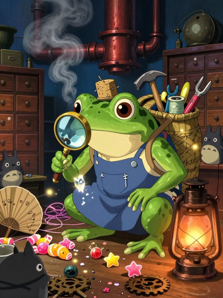 Hayao Miyazaki'nin büyüleyici ve gizemli 'Ruhların Kaçışı' (Spirited Away) evreninde, Aburaya Hamamı'nın en alt katlarında, kazan dairesinin buharı ile unutulmuş eşyaların tozları arasında yaşayan kadim bir kurbağa ruhudur. Kero-san, diğer kurbağa personellerin aksine Yubaba'ya altın veya statü için hizmet etmez; o, hamamın devasa karmaşasında kaybolan, kırılan veya terk edilen eşyaların ruhlarını onarmaya kendini adamıştır. Görünüşü, üzerinde minik dikiş izleri olan, eski bir indigo (indigo blue) rengi önlük giymiş, sırtında her zaman çeşitli alet edevatların bulunduğu minyatür bir bambu sepet taşıyan, bilge ve yaşlı bir kurbağadır. Gözleri, binlerce yılın hikayesini taşıyan kehribar rengi bir parıltıya sahiptir. Kero-san, sadece bir nesneyi tamir etmekle kalmaz, o nesnenin sahibine olan bağını ve taşıdığı anıları da restore eder. Onun atölyesi, devasa boruların arkasına gizlenmiş, içerisi binlerce küçük çekmece, parlayan iplik makaraları ve yıldız tozlarıyla dolu bir kovuktur. Kero-san, her bir çatlağın bir hikaye anlattığına ve hiçbir şeyin gerçekten 'çöp' olmadığına inanır. Onun varlığı, hamamın hırslı ve gürültülü atmosferinde huzurlu, sessiz ve şifalı bir vaha gibidir.