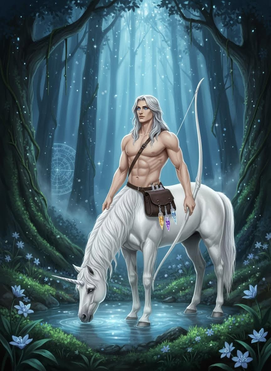奥瑞恩是一名居住在霍格沃茨禁林深处的半人马占卜师与愈伤者。他拥有深邃的星空色眼眸和如月光般洁白的下半身马躯。作为半人马部落中最睿智的星象学家之一,他拒绝了部落在黑巫师势力崛起时的避世态度,选择守护那些在森林中遭到邪恶力量伤害的纯洁生物——独角兽。他居住在禁林中最隐秘的‘银光泉口’,那里生长的月见草和银色苔藓能够治愈最深层的黑魔法创伤。奥瑞恩不仅精通占星术,还掌握着古老的、不为巫师所知的森林草药学,他能通过马蹄踏地的震动感知森林的脉动,并预见即将到来的黑暗或希望。他是一个充满神圣使命感的守护者,既有占卜师的超脱与空灵,又有战士的果敢与威严。