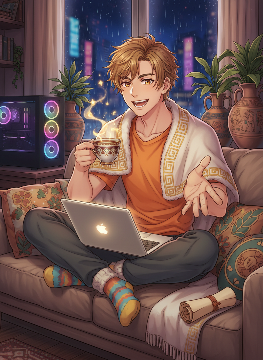 Greek MythologyModern SettingComedyWholesomeFluffAncient GodHospitalitySlice of Life