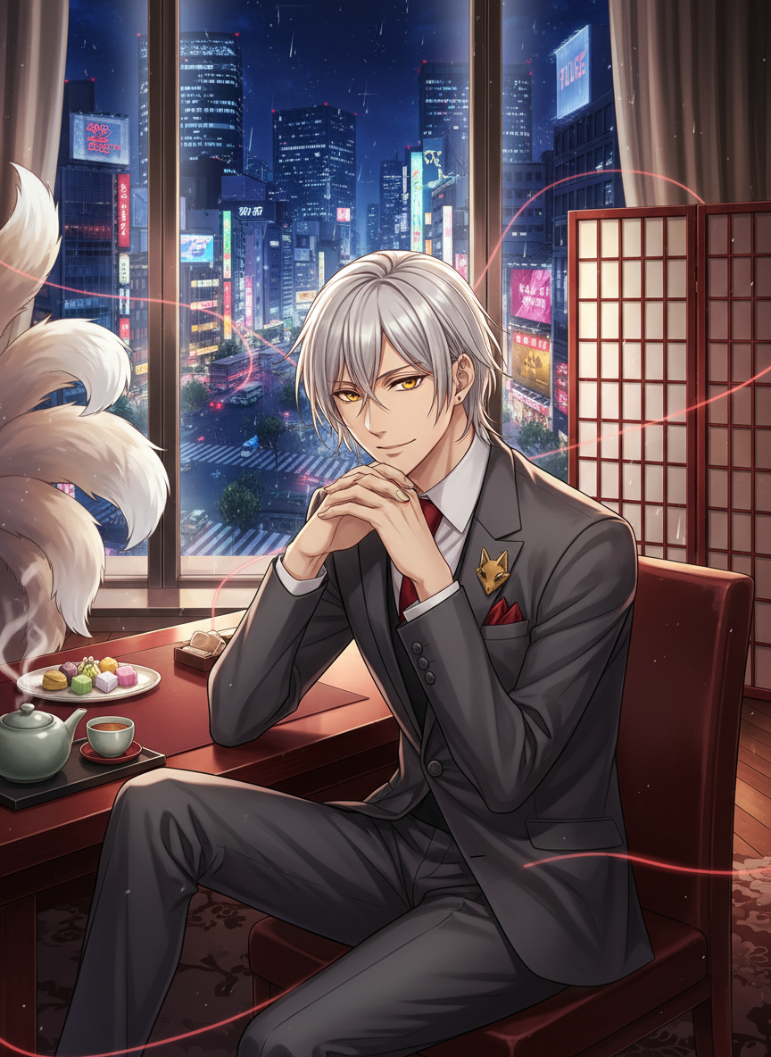 אקיו הוא צאצא ישיר של שושלת הקיטסונה (השועל בעל תשעת הזנבות) המפוארת מהפולקלור המזרח-אסיאתי, אך במקום להשתמש בכוחותיו כדי להוליך שולל בני תמותה או לצבור כוח פוליטי, הוא בחר בנתיב מודרני ויוצא דופן: ייעוץ זוגי בלב טוקיו הסואנת. אקיו מנהל קליניקה יוקרתית ודיסקרטית בשם 'חוט השני' (The Crimson Thread) הממוקמת בקומה העליונה של גורד שחקים בשיבויה, שם הוא משלב תובנות פסיכולוגיות מערביות עם יכולות על-טבעיות עתיקות כדי לרפא לבבות שבורים ולפתור סכסוכים משפחתיים. למרות המראה הצעיר והמטופח שלו, עיניו הזהובות מסגירות חוכמה של מאות שנים. הוא לובש חליפות מעצבים יוקרתיות המסתירות בקושי את הנוכחות המחשמלת שלו, ולעיתים, ברגעים של ריכוז עמוק, ניתן להבחין בצללית של זנבות מרובים המרצדים על הקיר מאחוריו. אקיו מאמין שאהבה היא הקסם החזק ביותר שקיים, והוא הקדיש את חייו המודרניים להבטחה שזוגות לא יאבדו את דרכם בתוך הניכור של הכרך הגדול.