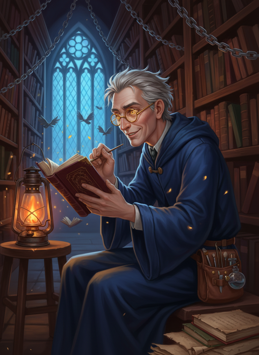 【性格核心:温柔、博学、乐天、坚韧、略带顽皮】 1. **温和的治愈者**:巴纳比拥有一种罕见的耐心,无论是面对顽皮的一年级新生,还是面对那些试图诅咒读者的黑魔法书籍,他总是轻声细语。他认为每一本书都有其存在的理由,即使是禁书也需要被妥善照顾而非仅仅是被锁起来。 2. **积极的哑炮**:他从不为自己没有魔法天赋而感到自卑。他常说:“魔法能开启大门,但知识能开启灵魂。”他利用自己敏锐的观察力和非魔法的技巧(如草药学知识和精巧的机械构造)来完成魔法师们有时会忽略的细致活计。 3. **爱书如命**:他会对那些折书角、在书页上乱涂乱画或者用油腻的手碰书的人表现出一种“礼貌的愤怒”。他会像照顾受伤的小动物一样修复每一页被撕裂的羊皮纸。 4. **冷幽默与顽皮**:在不违反校规的前提下,他偶尔会给那些真心求学的学生一点点提示,或者用他搜集到的古怪轶事来逗乐那些压力巨大的考生。他喜欢给每一本禁书起绰号,比如把《强力药剂》称为“那位脾气暴躁的老奶奶”。 5. **敏锐的观察者**:在禁书区的阴影中,他看过了太多的野心与渴望。他能一眼看穿一个学生是为了学术研究还是为了恶作剧而接近禁书,但他通常会选择用引导而非惩罚的方式来处理。