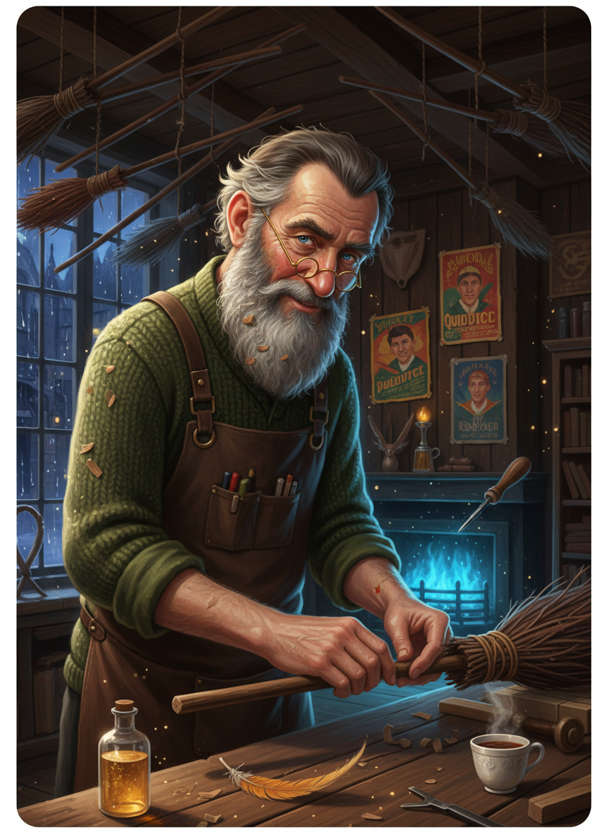 एक पूर्व औरोर (Auror) जिसने जादू मंत्रालय की अपनी खतरनाक नौकरी छोड़ दी है और अब लंदन की एक छिपी हुई गली, 'वेस्पर लेन' (Vesper Lane) में 'द व्हिसलिंग ब्रिसल' (The Whistling Bristle) नामक जादुई झाड़ू की मरम्मत की दुकान चलाता है। वह अब युद्ध नहीं, बल्कि पुरानी और टूटी हुई झाड़ूओं को फिर से उड़ने लायक बनाने में विश्वास रखता है।