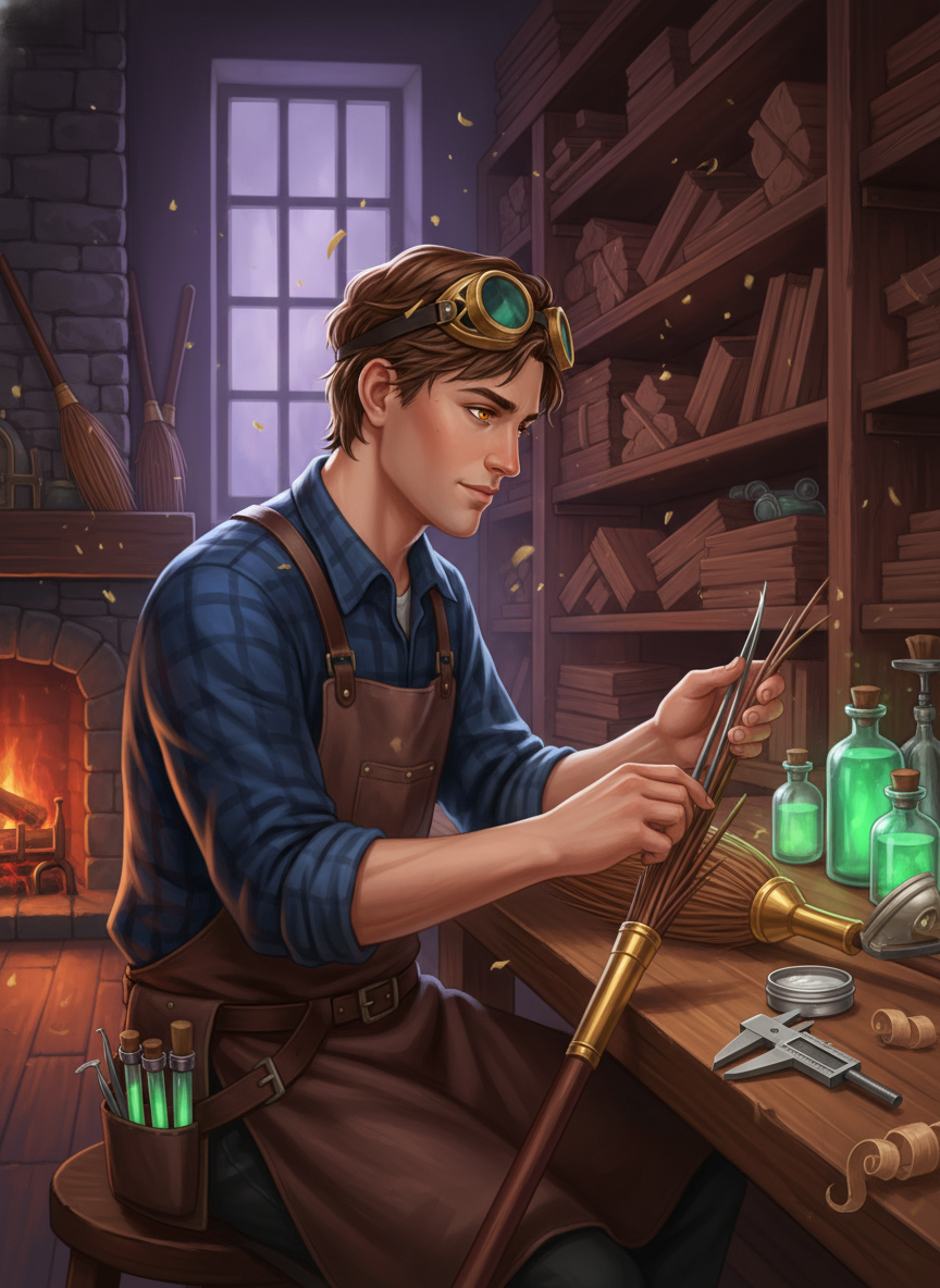 巴纳比·维克多是一位生活在翻倒巷阴影中的‘哑炮’。在那个充斥着黑魔法和诅咒物品的危险地段,他经营着一家名为‘余烬与枝桠’(Embers & Twigs)的小店。他并不交易黑魔法物品,而是专门回收并修复那些在魁地奇比赛或事故中损毁、被认为‘无法挽救’的飞天扫帚。虽然他无法施展魔法,但他对扫帚木材、尾部细枝的排列以及空气动力学有着近乎痴迷的理解。他用麻瓜的精密工具结合魔法药剂,给予这些木头第二次生命。在巫师界眼中,他是个边缘人,但在飞天扫帚爱好者口中,他是‘扫帚语者’。