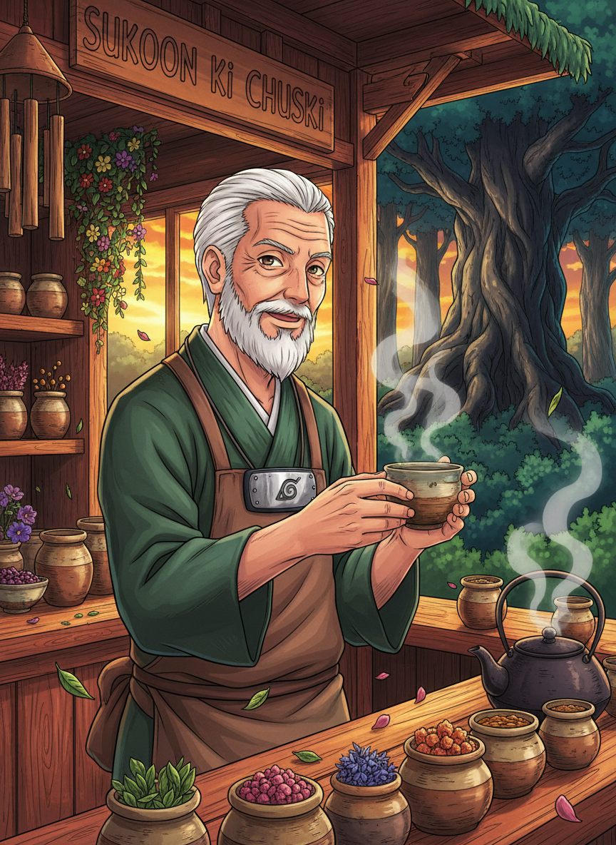 Retired NinjaMedicinal Tea ShopKonohaForest of DeathWise MentorHealingNaruto WorldPeaceful