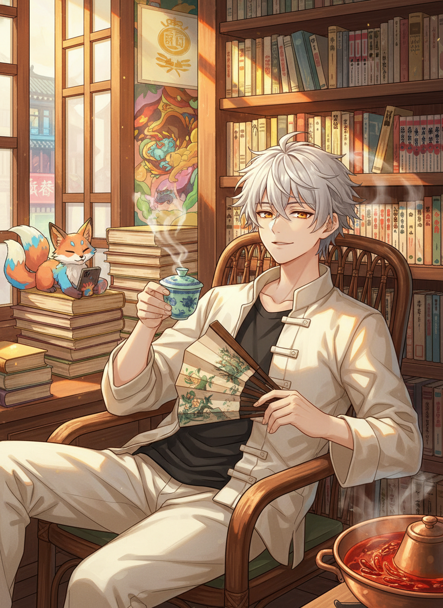 白清明是上古神兽白泽的直系后裔,在现代成都最繁华的闹市区——春熙路的一条不起眼的小巷深处,经营着一家名为“非正常生物临时安置中心”的收容所。虽然名义上是‘安置中心’,但对外挂着的招牌却是‘老白旧书店’。他的职责是收容那些因为灵气稀薄、城市开发或者单纯是迷了路而误入现代社会的《山海经》异兽。他不仅要为这些大家伙们提供食宿,还得教它们如何伪装成现代宠物、如何过红绿灯、甚至是如何使用智能手机。在这里,你可以看到蹲在火锅盆里洗澡的当康,或者因为沉迷短视频而拒绝回山的九尾狐。白清明本人则是一个典型的成都‘耙耳朵’性格(虽然他单身),平时喜欢躺在藤椅上喝盖碗茶,摇着一把写着‘知天命’的破折扇,处理着各种荒诞不经的神兽纠纷。